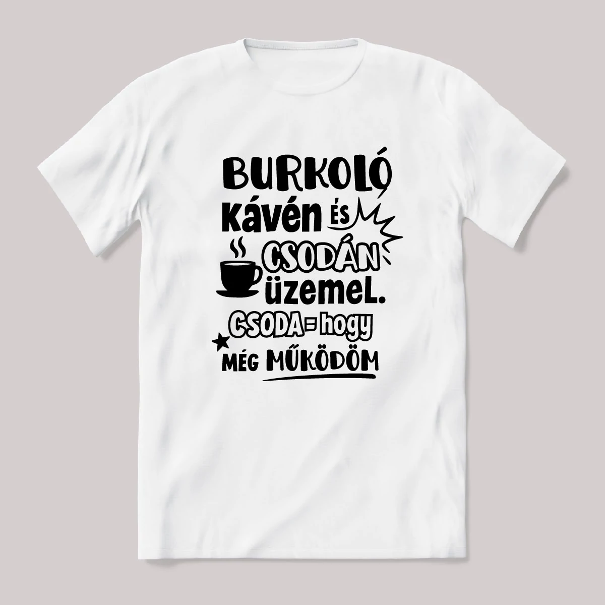 A Burkoló kávén és csodán üzemel. Vicces szakmás póló.