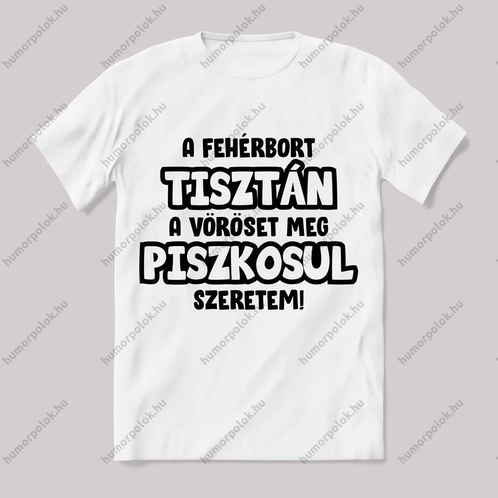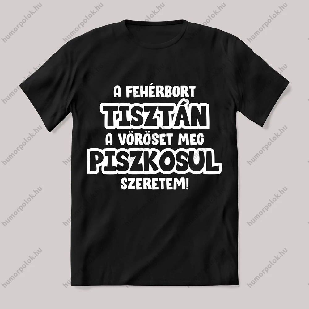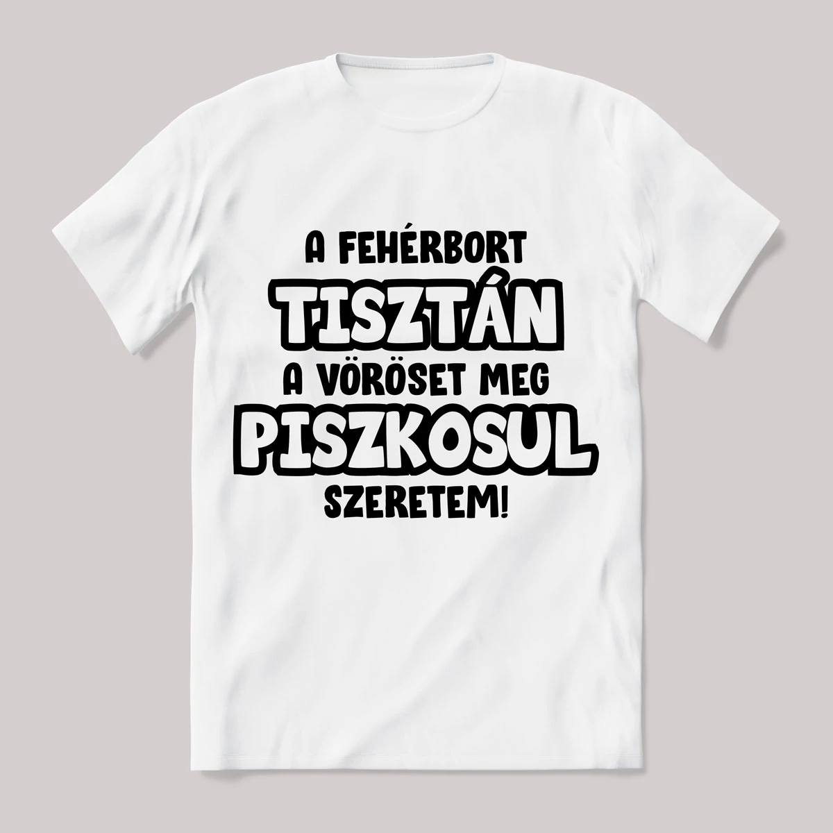 A fehérbort tisztán a vöröset piszkosul szeretem! Feliratos póló.