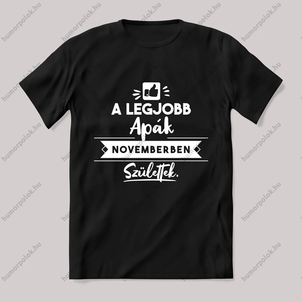 A legjobb apák novemberben születtek feliratos póló. – ha ezt viseled, mindenki tudni fogja, hogy nem csak stílusod, de humorod is van! Ez a November kategória egyik legmenőbb darabja.