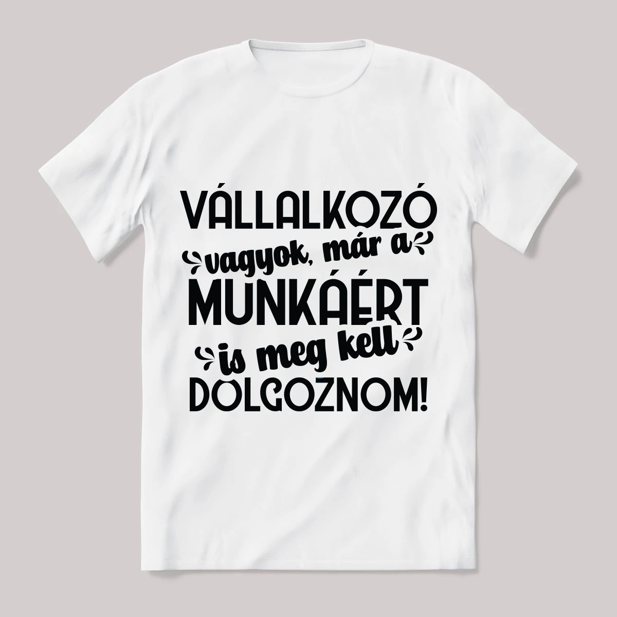 Vállalkozó vagyok, már a munkáért is meg kell dolgozni. Feliratos vicces póló.