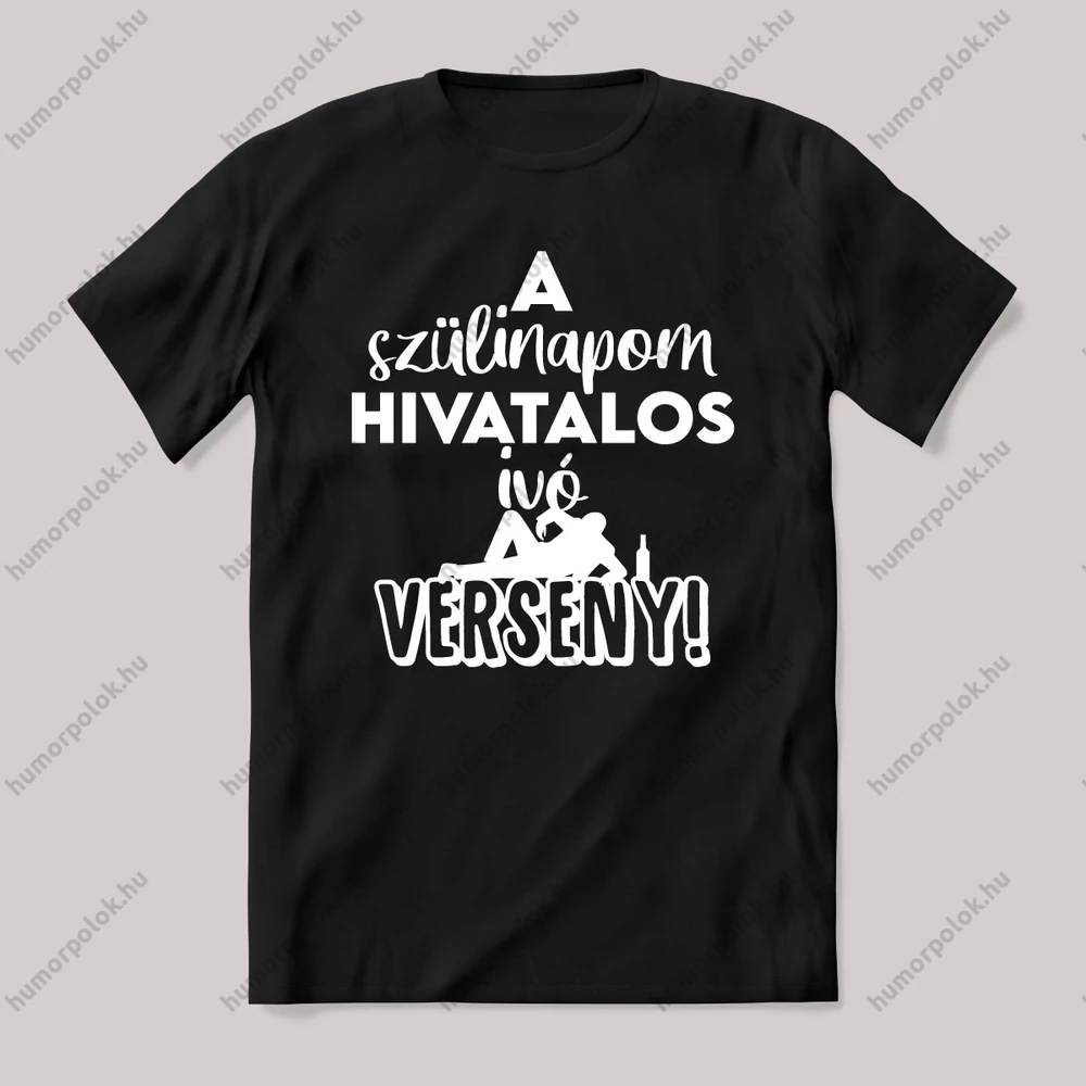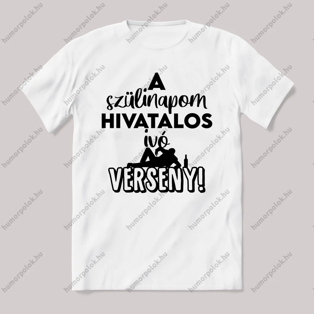 A szülinapom hivatalos ivóverseny. Vicces póló. – ha ezt viseled, mindenki tudni fogja, hogy nem csak stílusod, de humorod is van! Ez a Szám nélküli (univerzális) kategória egyik legmenőbb darabja.