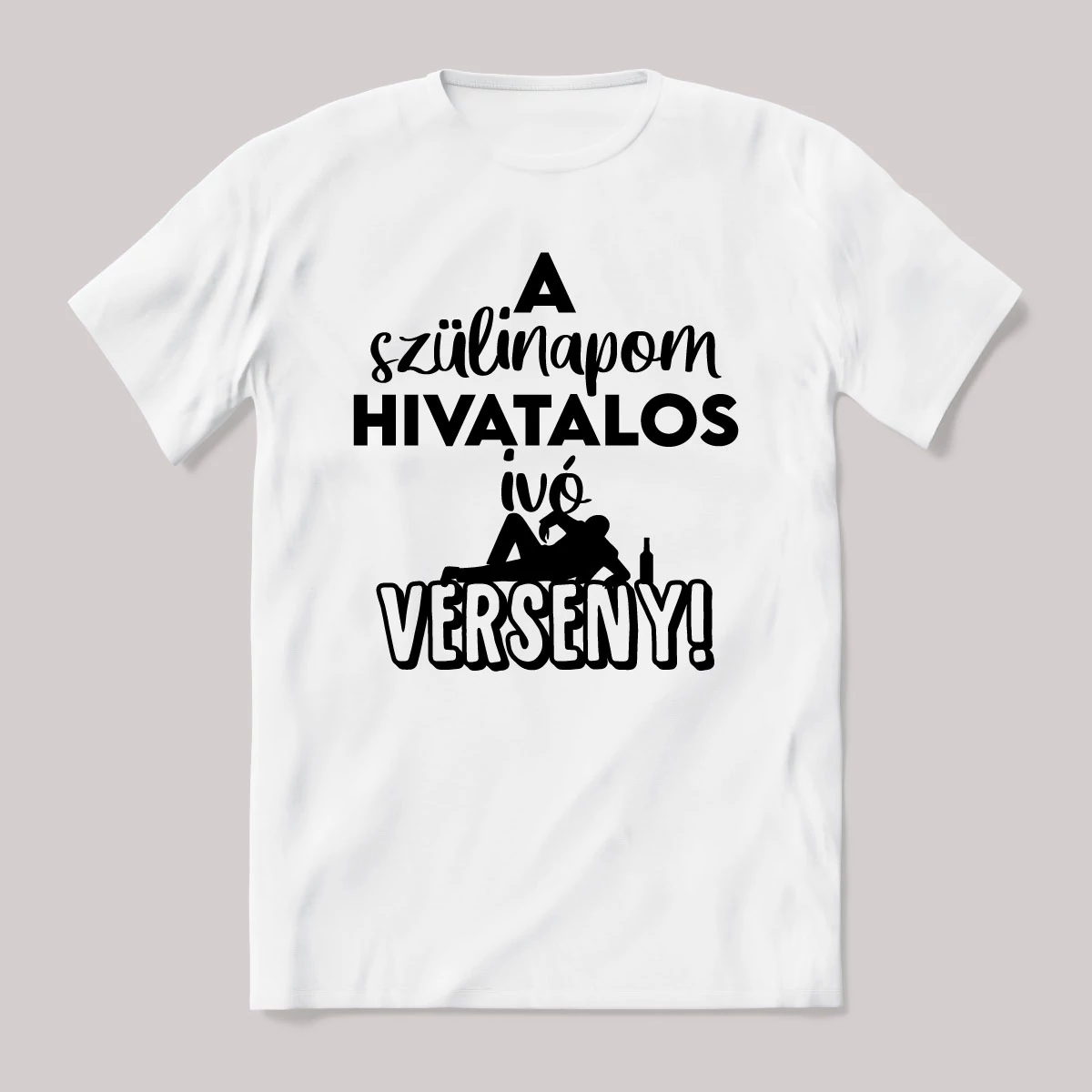 A szülinapom hivatalos ivóverseny. Feliratos vicces póló.