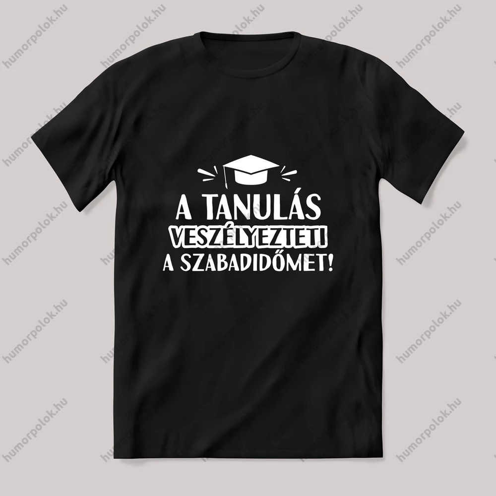 A tanulás veszélyezteti a szabadidőm. Feliratos póló.