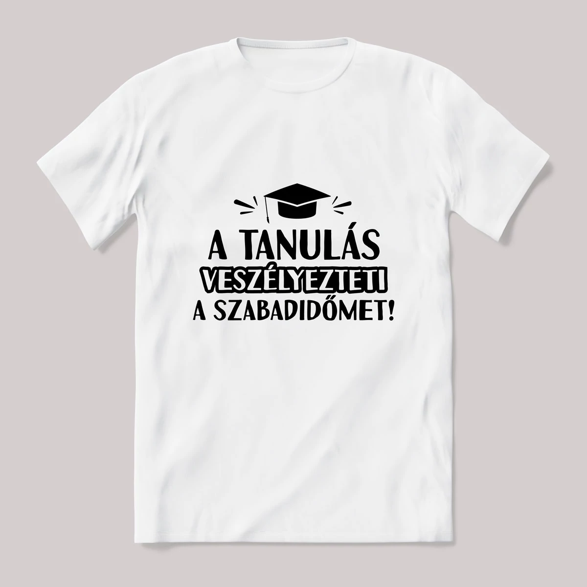 A tanulás veszélyezteti a szabadidőm. Feliratos póló. – ha ezt viseled, mindenki tudni fogja, hogy nem csak stílusod, de humorod is van! Ez a Iskolás / Végzős kategória egyik legmenőbb darabja.