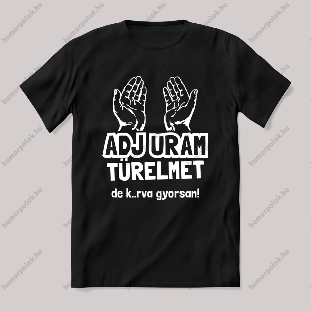 Adj türelmet de gyorsan! Feliratos póló – ha ezt viseled, mindenki tudni fogja, hogy nem csak stílusod, de humorod is van! Ez a Idegbeteg-Állat :) kategória egyik legmenőbb darabja.