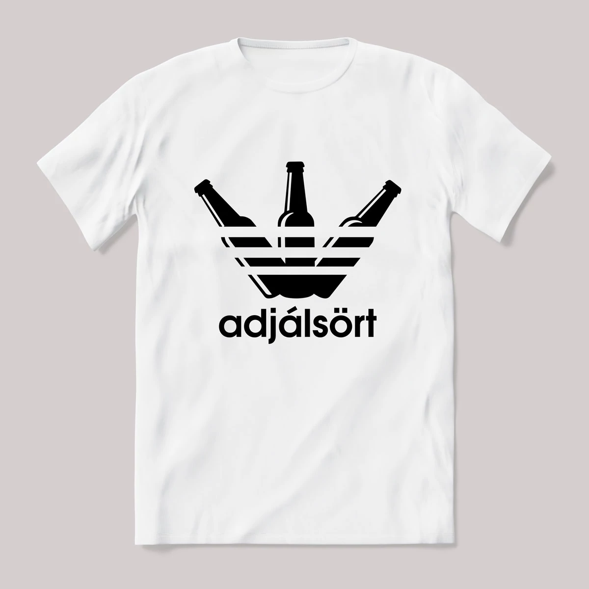 Adjálsört, adidas márkaparódia! Feliratos póló – ha ezt viseled, mindenki tudni fogja, hogy nem csak stílusod, de humorod is van! Ez a Sör kategória egyik legmenőbb darabja.