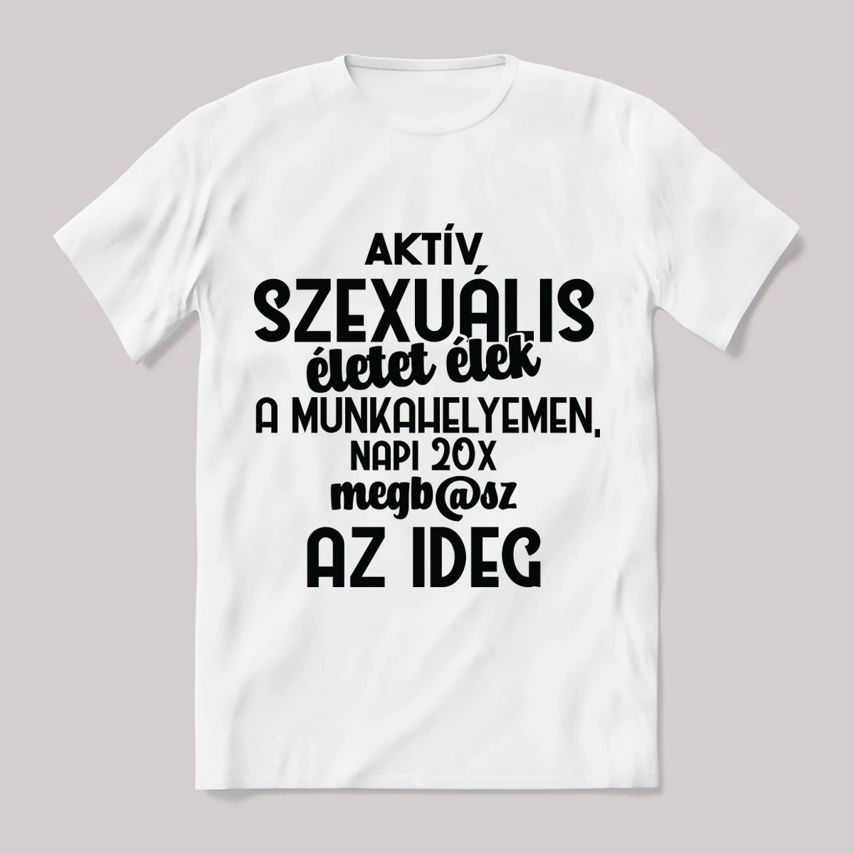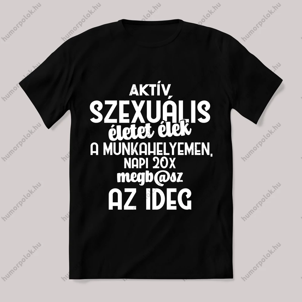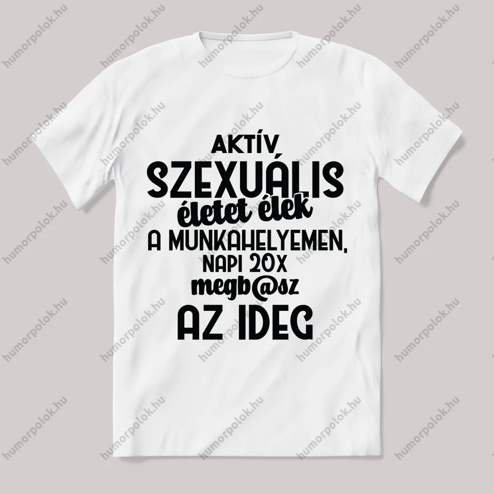 Aktí szexuális életet élek, a munkahelyen 20x megb@sz az ideg. Feliratos vicces póló.