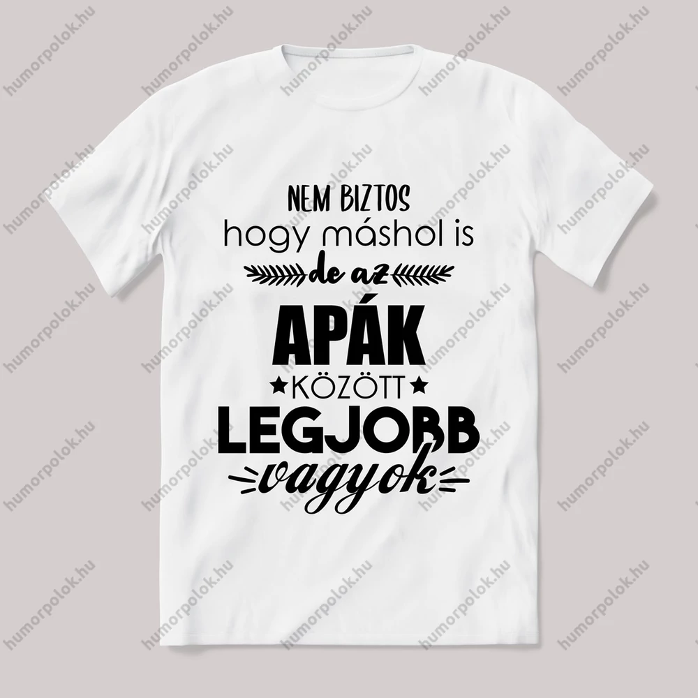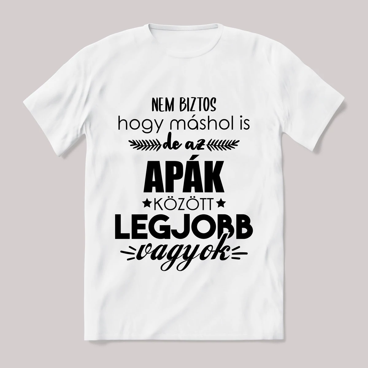 Nem biztos, hogy máshol is. de az Apák között a legjobb vagyok. Feliratos vicces póló.