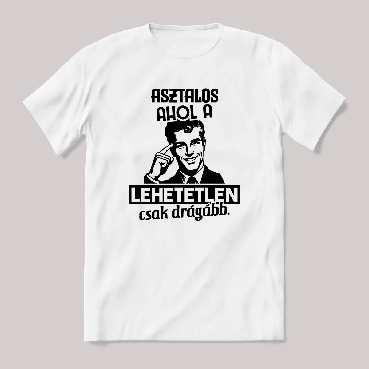 Asztalos, ahol a lehetetlen csak drágább. Vicces póló.