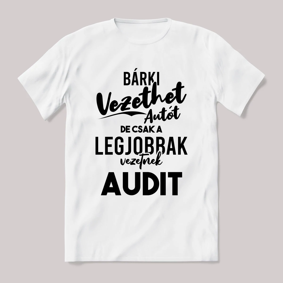 Bárki vezethet autót, de csak a legjobbak vezetnek audit. Feliratos vicces póló.