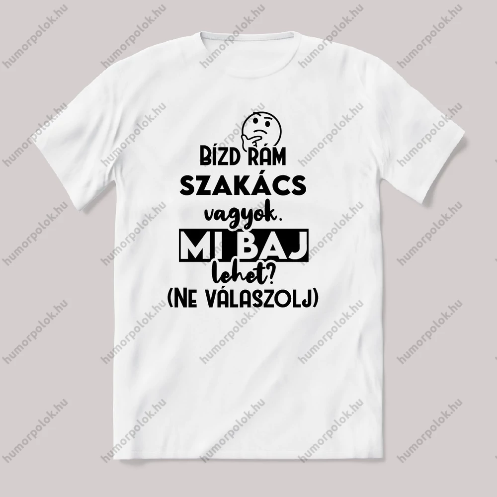 Bízd rám Szakács vagyok, mi baj lehet? Vicces szakmás póló. – ha ezt viseled, mindenki tudni fogja, hogy nem csak stílusod, de humorod is van! Ez a Szakács kategória egyik legmenőbb darabja.
