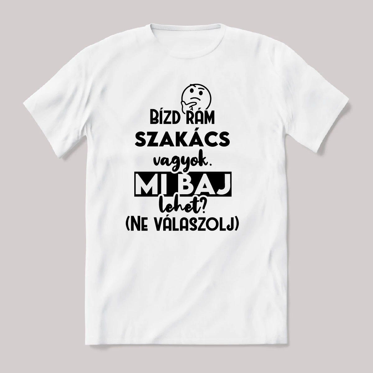 Bízd rám Szakács vagyok, mi baj lehet? (Ne válaszolj)  Feliratos vicces szakmás póló.