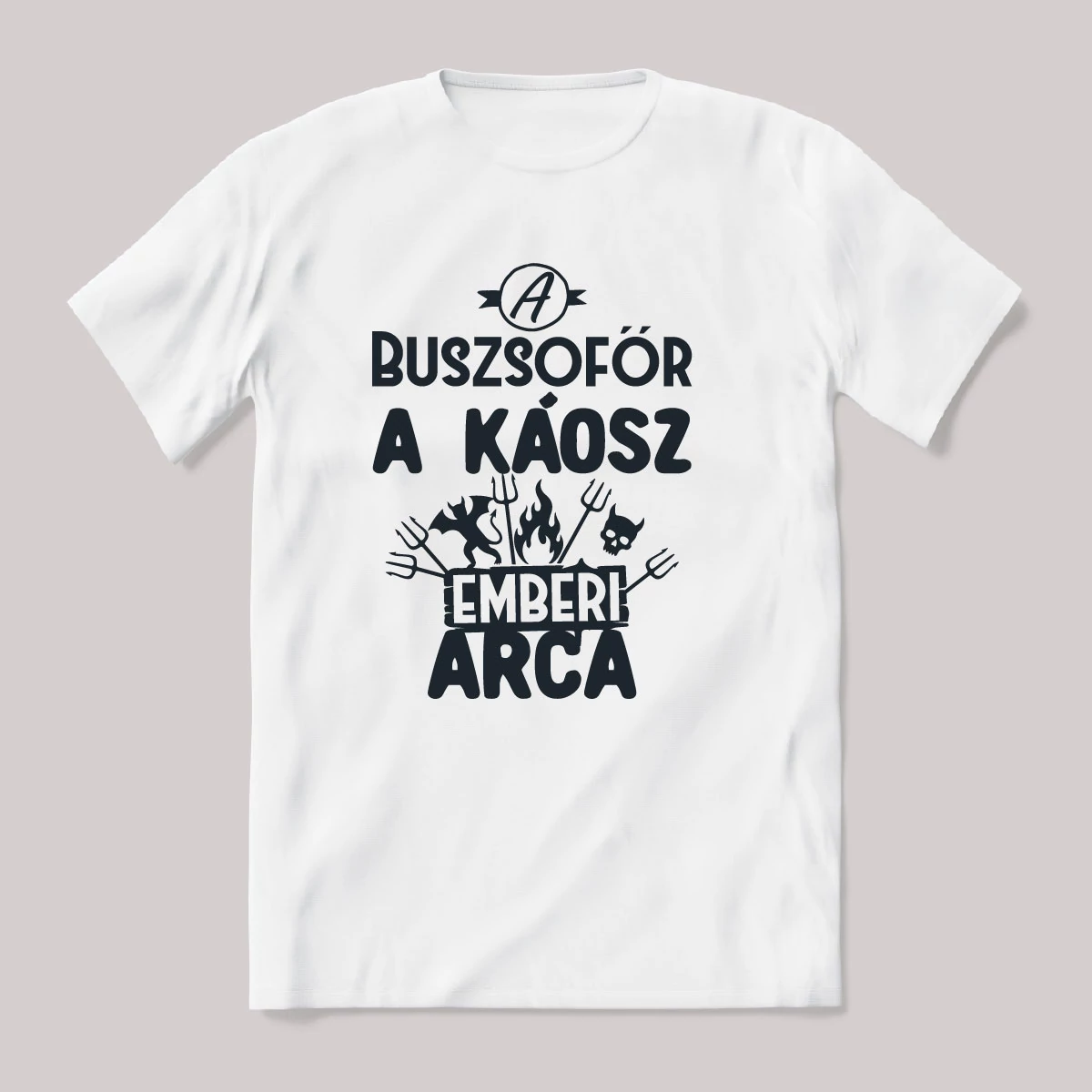 Buszsofőr, a káosz emberi arca. Vicces szakmás póló.