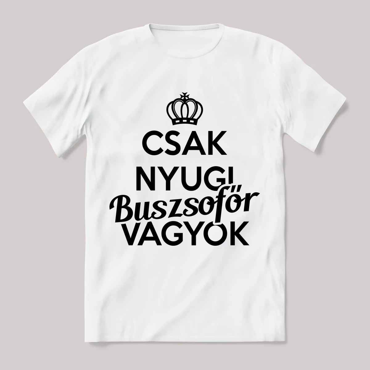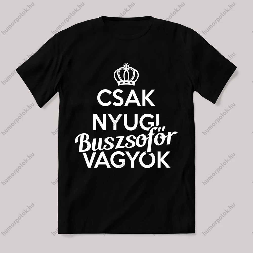 Csak nyugi, buszsofőr vagyok. Feliratos póló. – ha ezt viseled, mindenki tudni fogja, hogy nem csak stílusod, de humorod is van! Ez a Buszsofőr kategória egyik legmenőbb darabja.