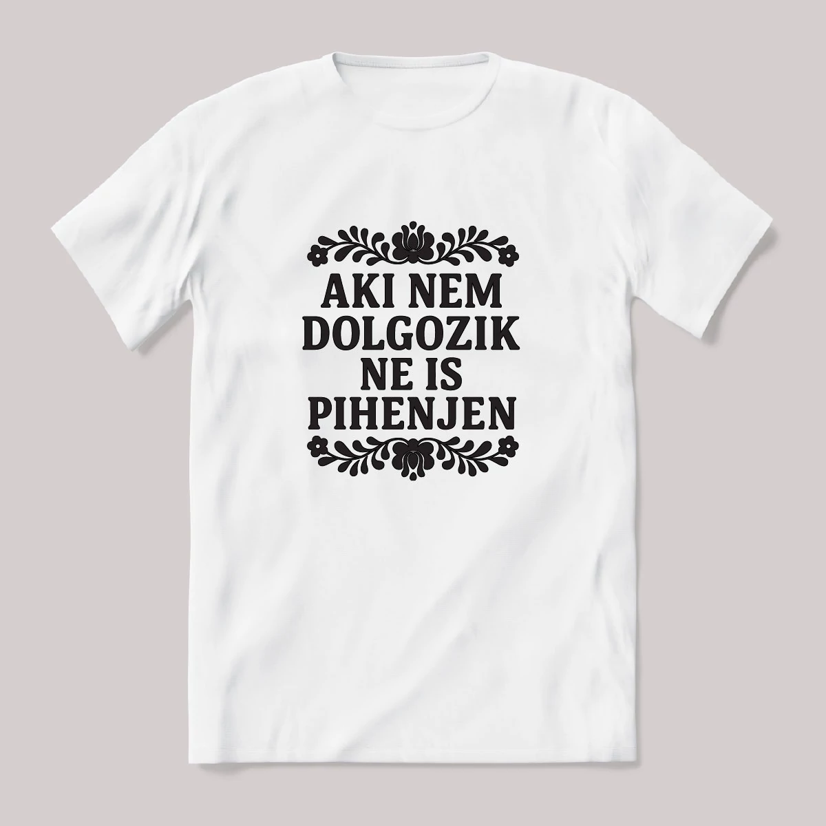 Aki nem dolgozik, ne is pihenjen. Magyar vicces póló.