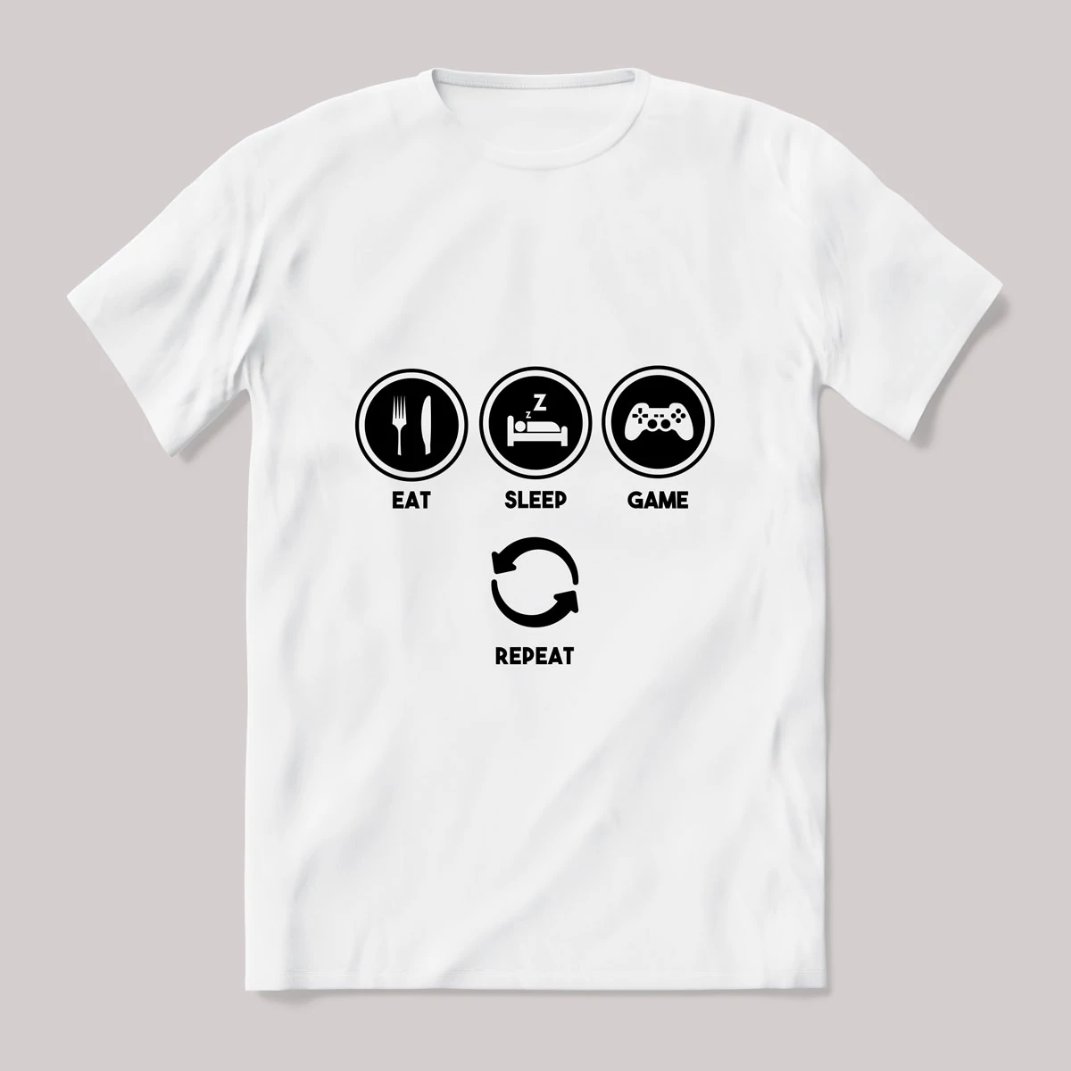 Eat sleep game repeat gamer. Feliratos póló.