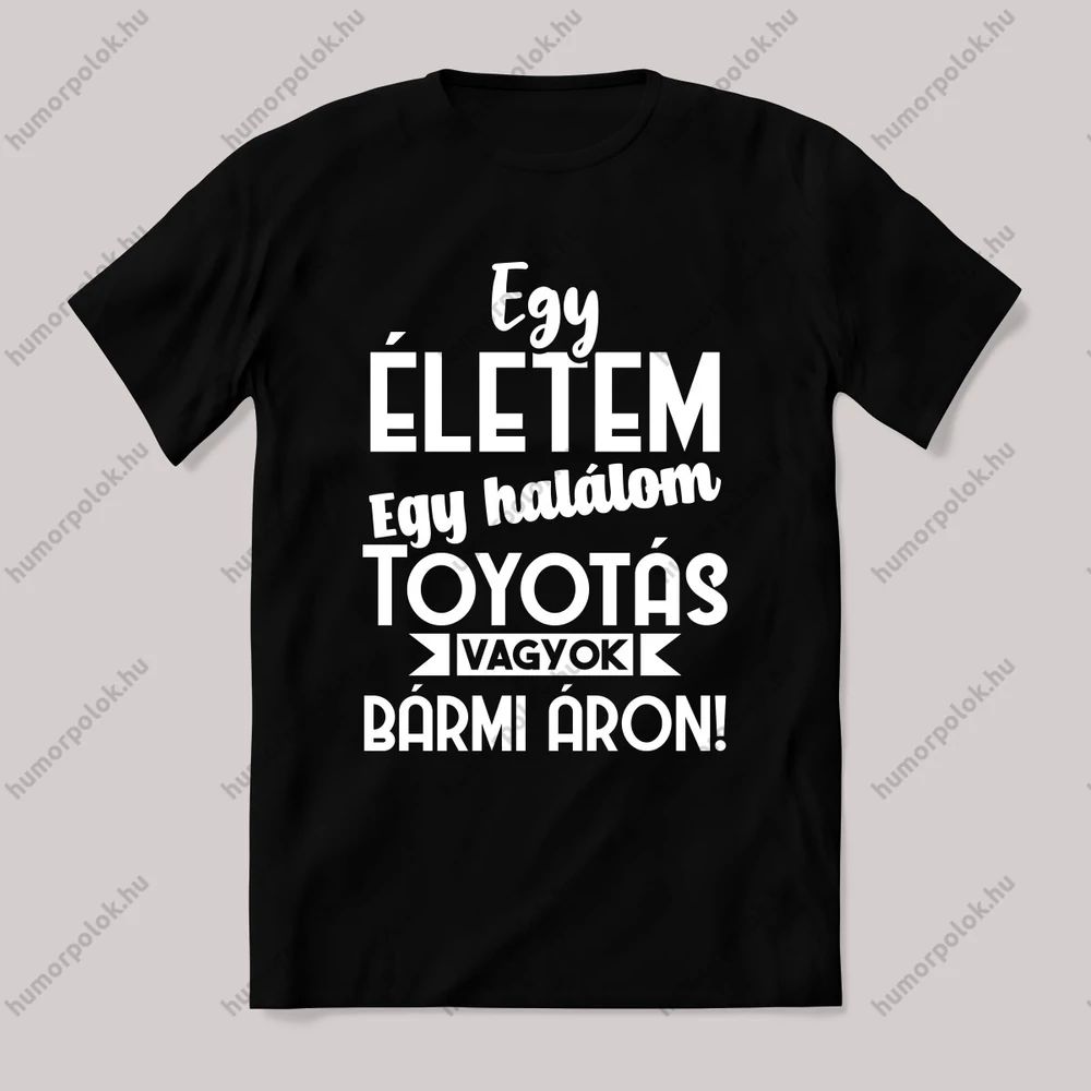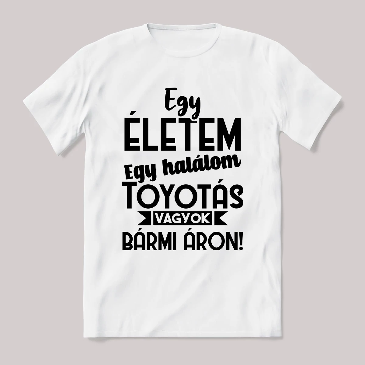 Egy életem egy halálom toyotás vagyok bármi áron. Feliratos vicces póló.