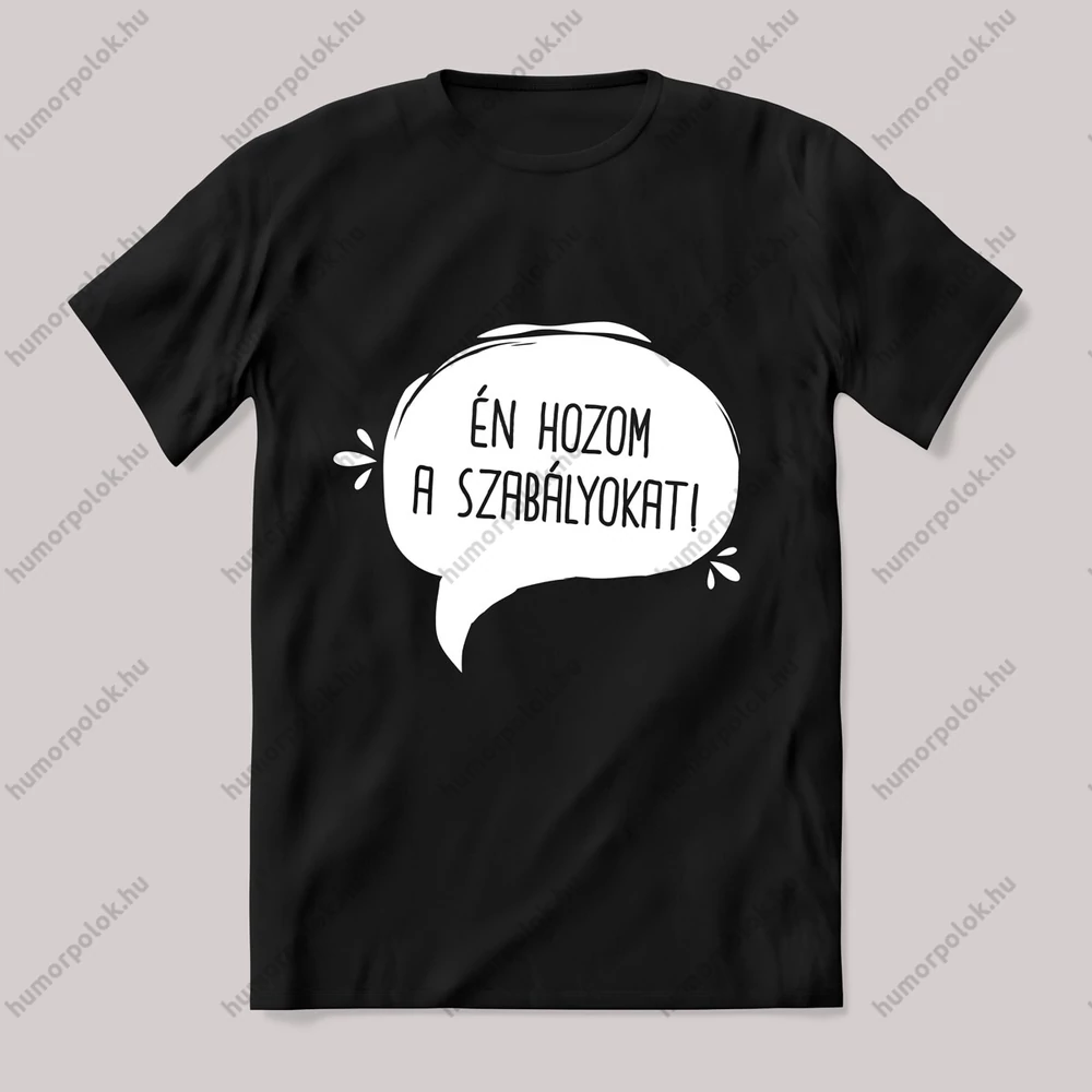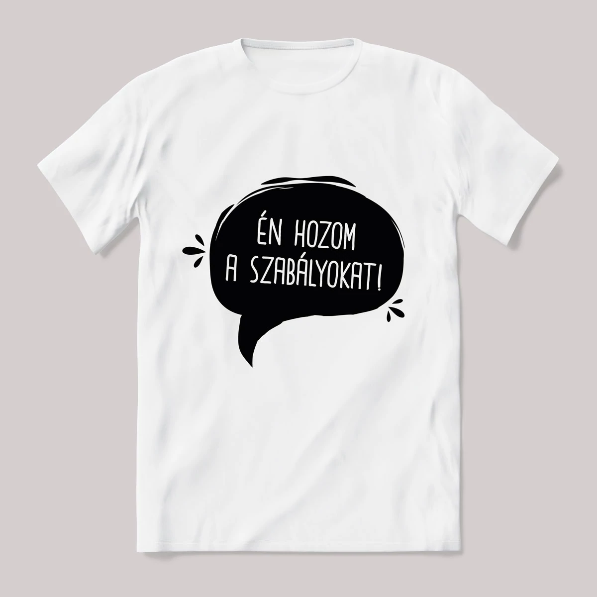 Én hozom a szabályokat! Feliratos póló. – ha ezt viseled, mindenki tudni fogja, hogy nem csak stílusod, de humorod is van! Ez a A Főnöknek! kategória egyik legmenőbb darabja.