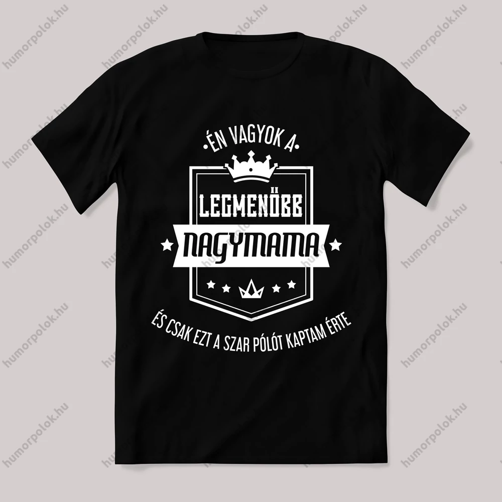 Én vagyok a legmenőbb nagymama. Vicces póló. – ha ezt viseled, mindenki tudni fogja, hogy nem csak stílusod, de humorod is van! Ez a Nagymamáknak kategória egyik legmenőbb darabja.
