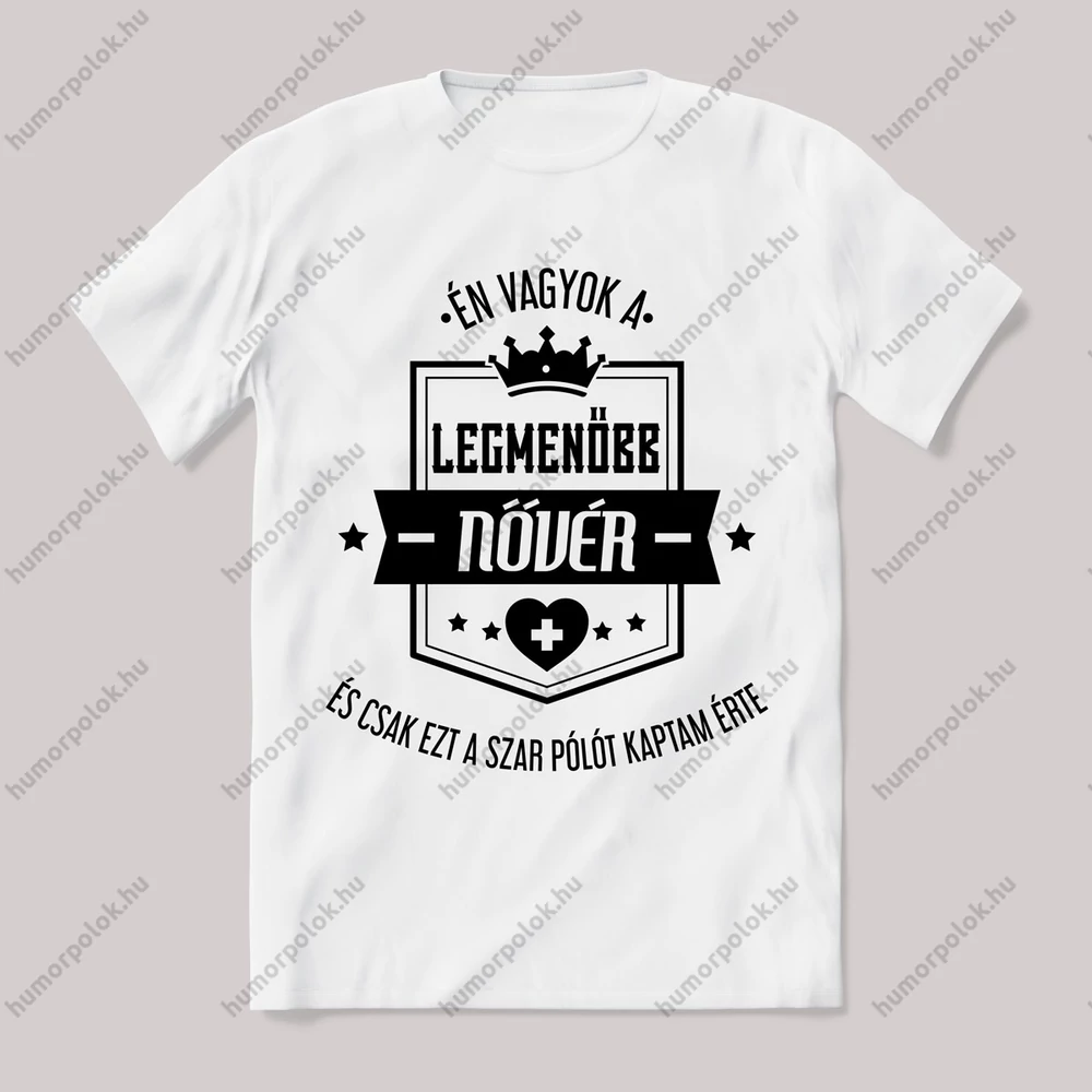 Én vagyok a legmenőbb nővér. Vicces póló. – ha ezt viseled, mindenki tudni fogja, hogy nem csak stílusod, de humorod is van! Ez a Nővéreknek kategória egyik legmenőbb darabja.