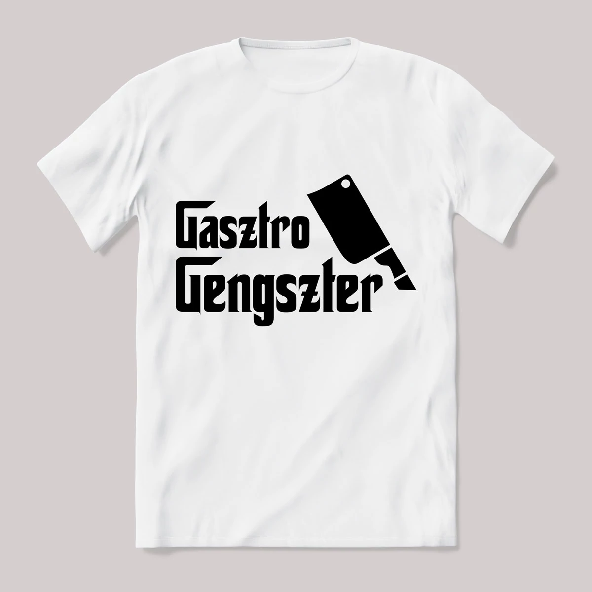 Gasztro gengszter. Vicces póló. – ha ezt viseled, mindenki tudni fogja, hogy nem csak stílusod, de humorod is van! Ez a Grillezés/Főzés kategória egyik legmenőbb darabja.