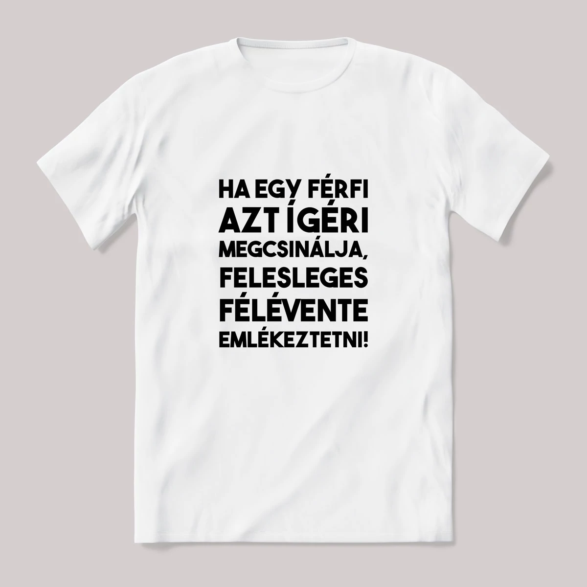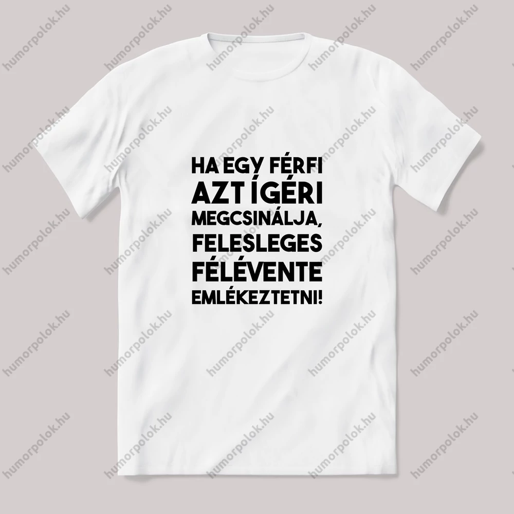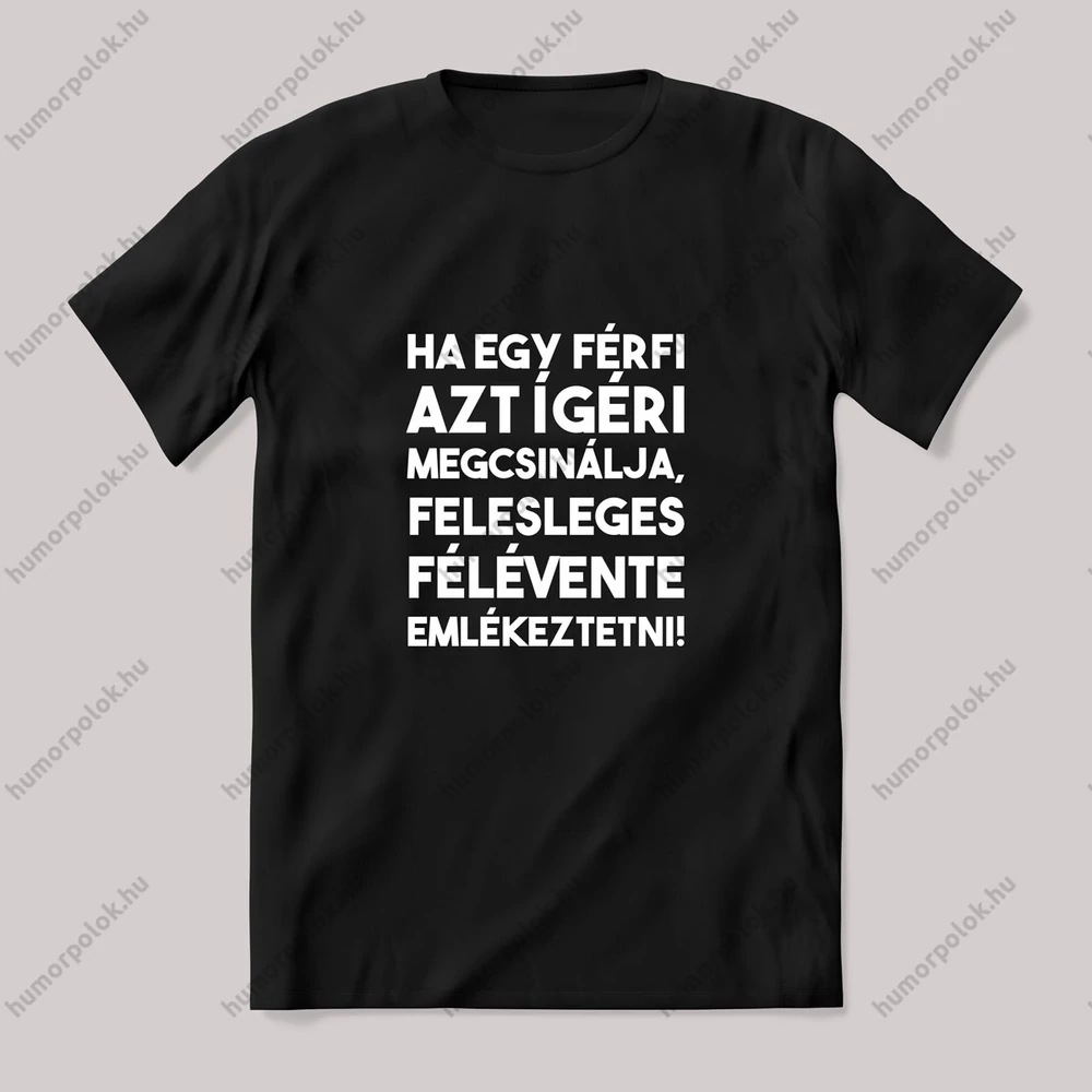 Ha egy férfi azt ígéri megcsinálja felesleges félévente emlékeztetni. Vicces feliratos póló.