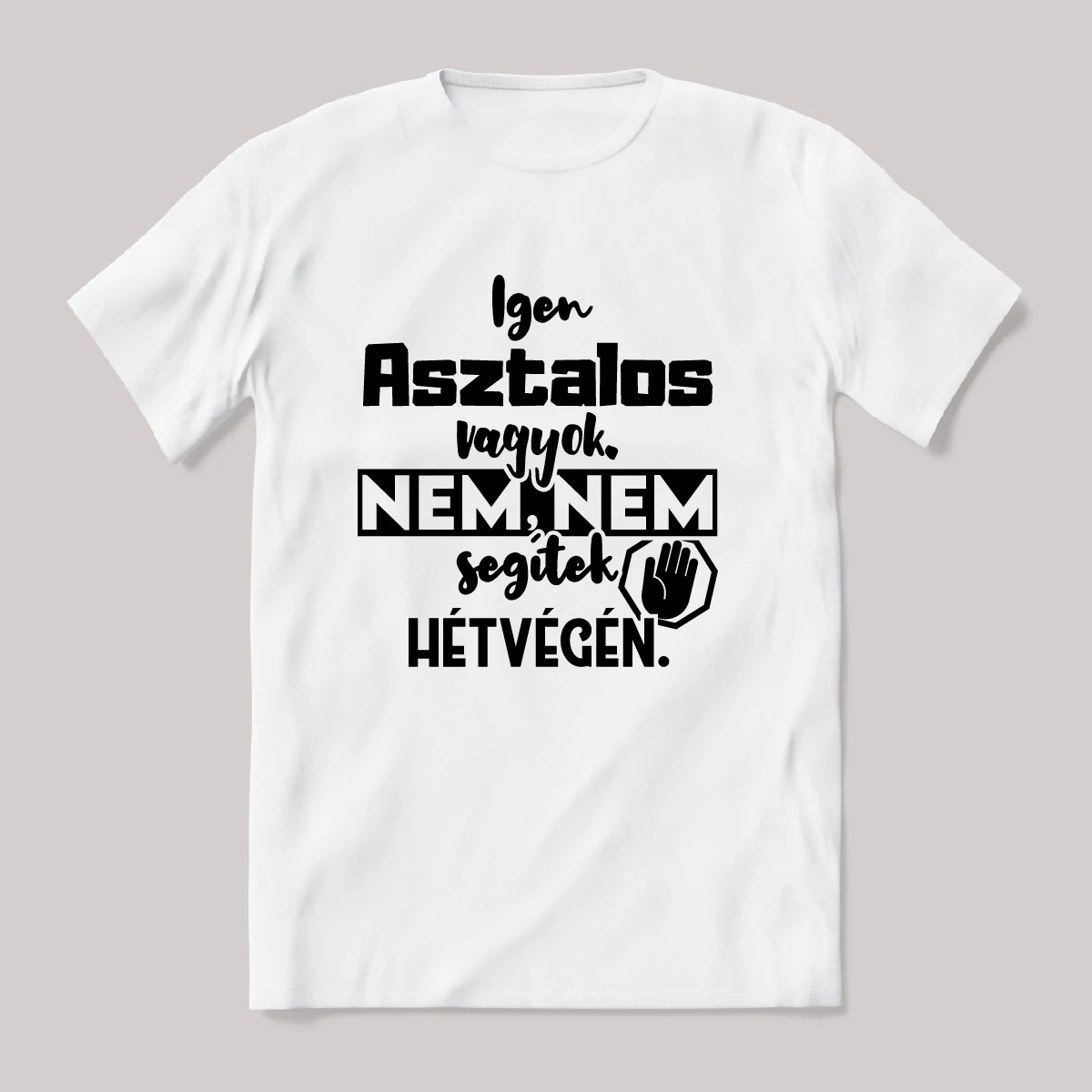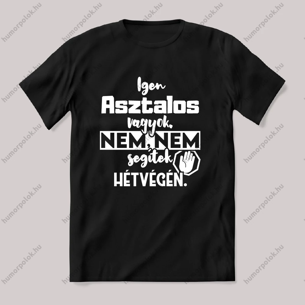 Igen Asztalos vagyok, nem, nem segítek hétvégén. Vicces póló. – ha ezt viseled, mindenki tudni fogja, hogy nem csak stílusod, de humorod is van! Ez a Asztalos kategória egyik legmenőbb darabja.