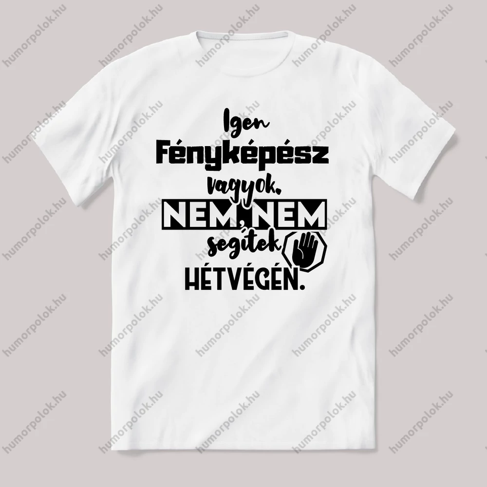 Igen fényképész vagyok, nem, nem segítek hétvégén. Vicces póló. – ha ezt viseled, mindenki tudni fogja, hogy nem csak stílusod, de humorod is van! Ez a Fényképész kategória egyik legmenőbb darabja.