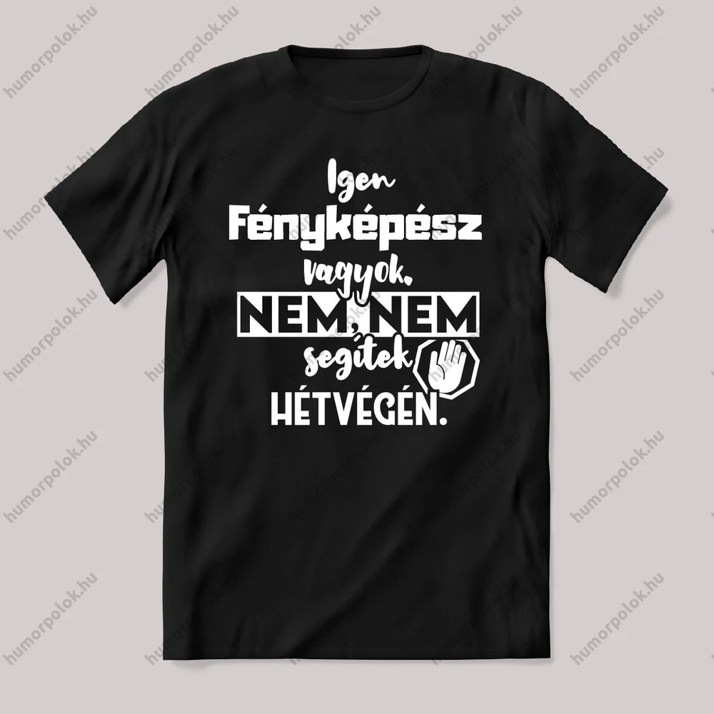 Igen fényképész vagyok, nem, nem segítek hétvégén. Vicces póló.
