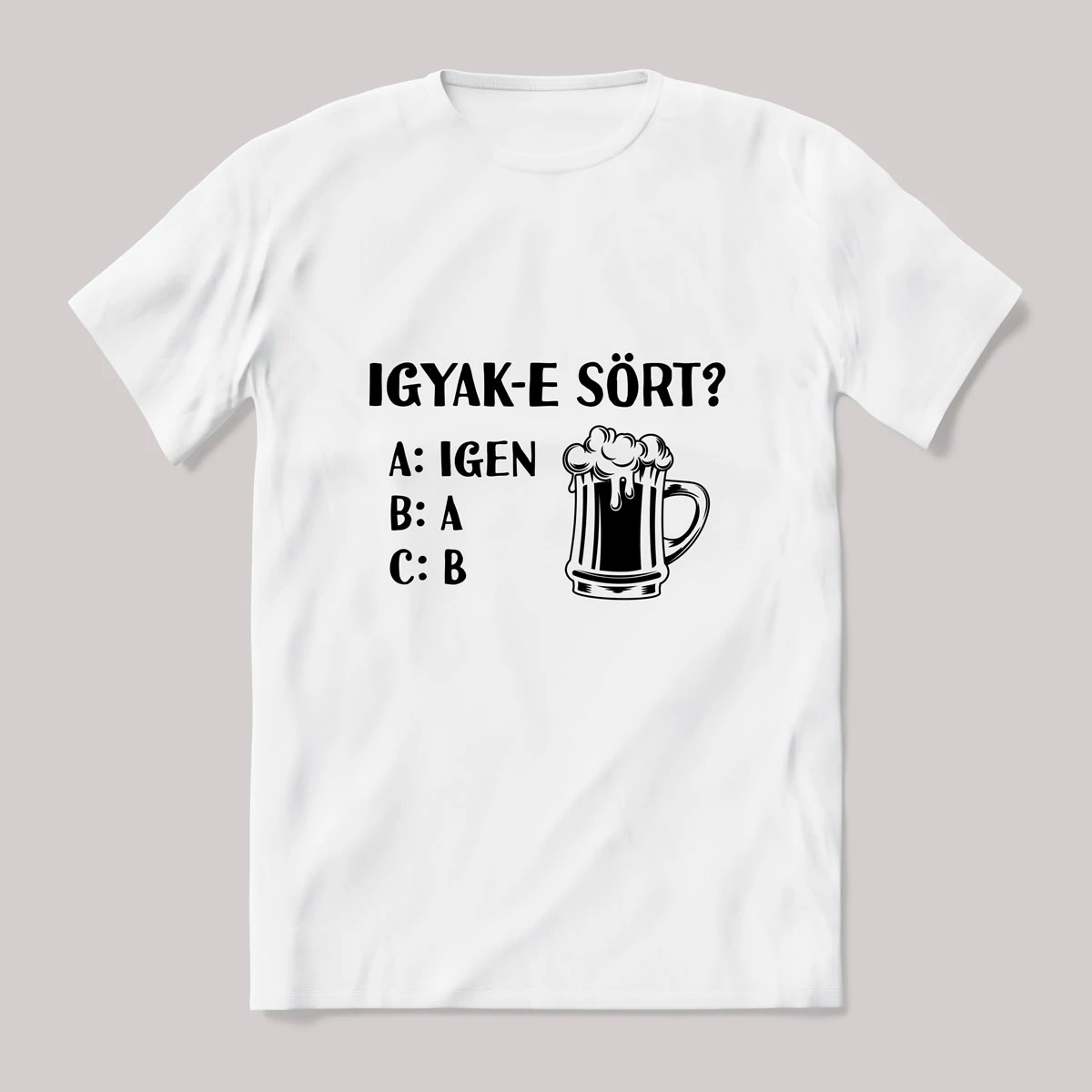 Igyak-e sört? Feliratos póló. – ha ezt viseled, mindenki tudni fogja, hogy nem csak stílusod, de humorod is van! Ez a Sör kategória egyik legmenőbb darabja.