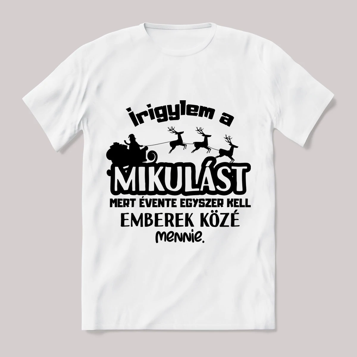 Irigylem a mikulást. Vicces póló. – ha ezt viseled, mindenki tudni fogja, hogy nem csak stílusod, de humorod is van! Ez a Antiszociális kategória egyik legmenőbb darabja.