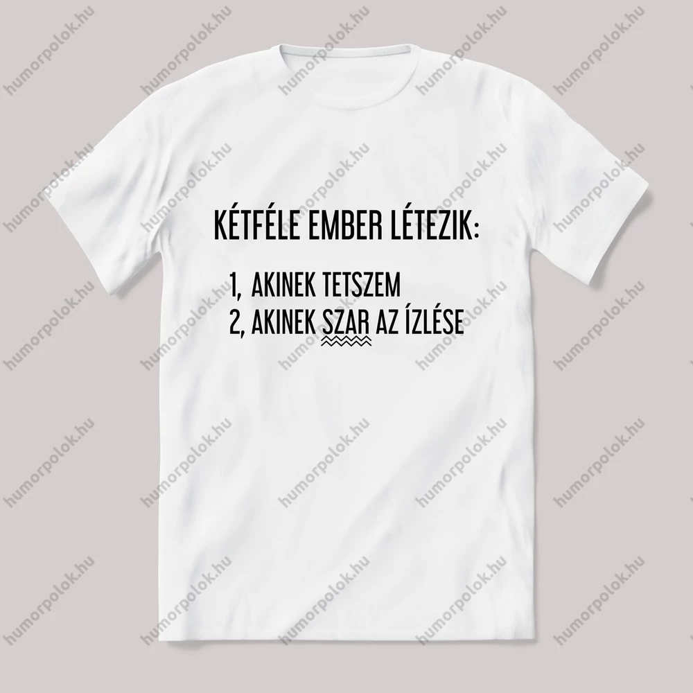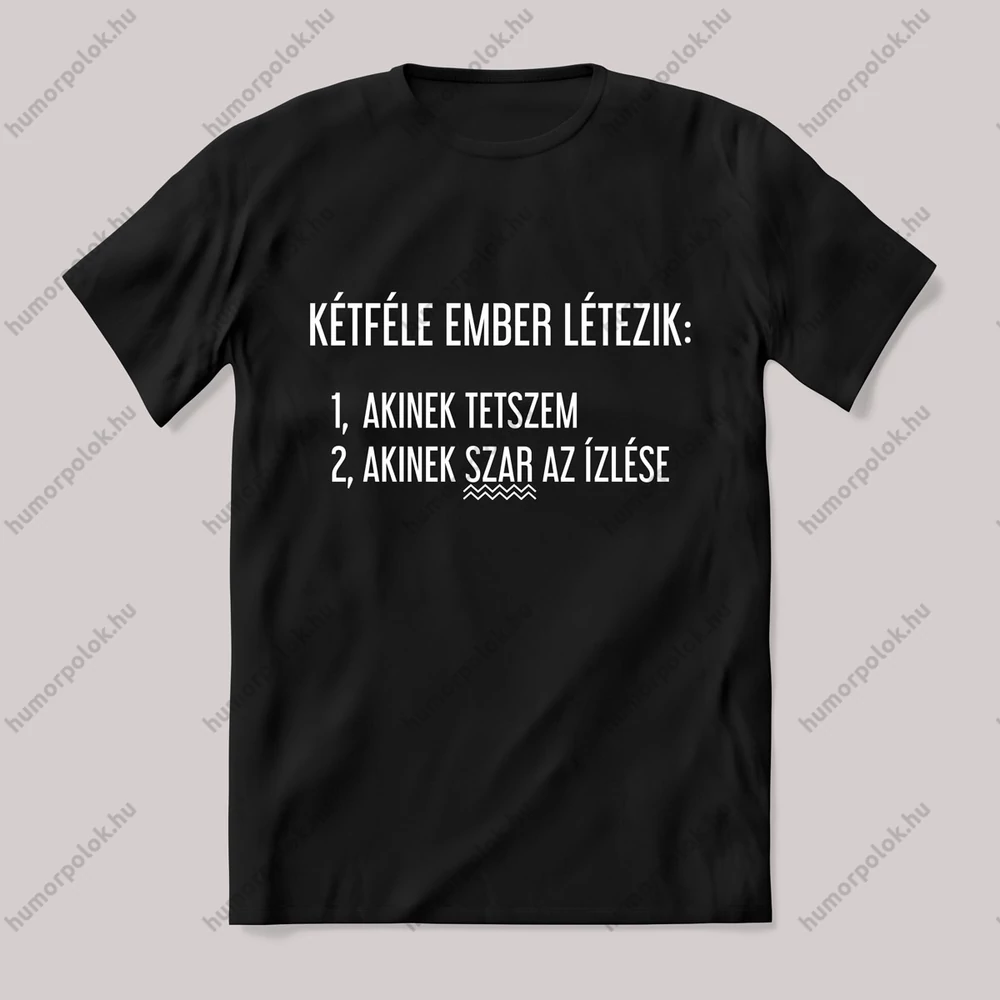 Két féle ember létezik: akinek tetszem, és akinek szar az ízlése. Vicces feliratos póló.
