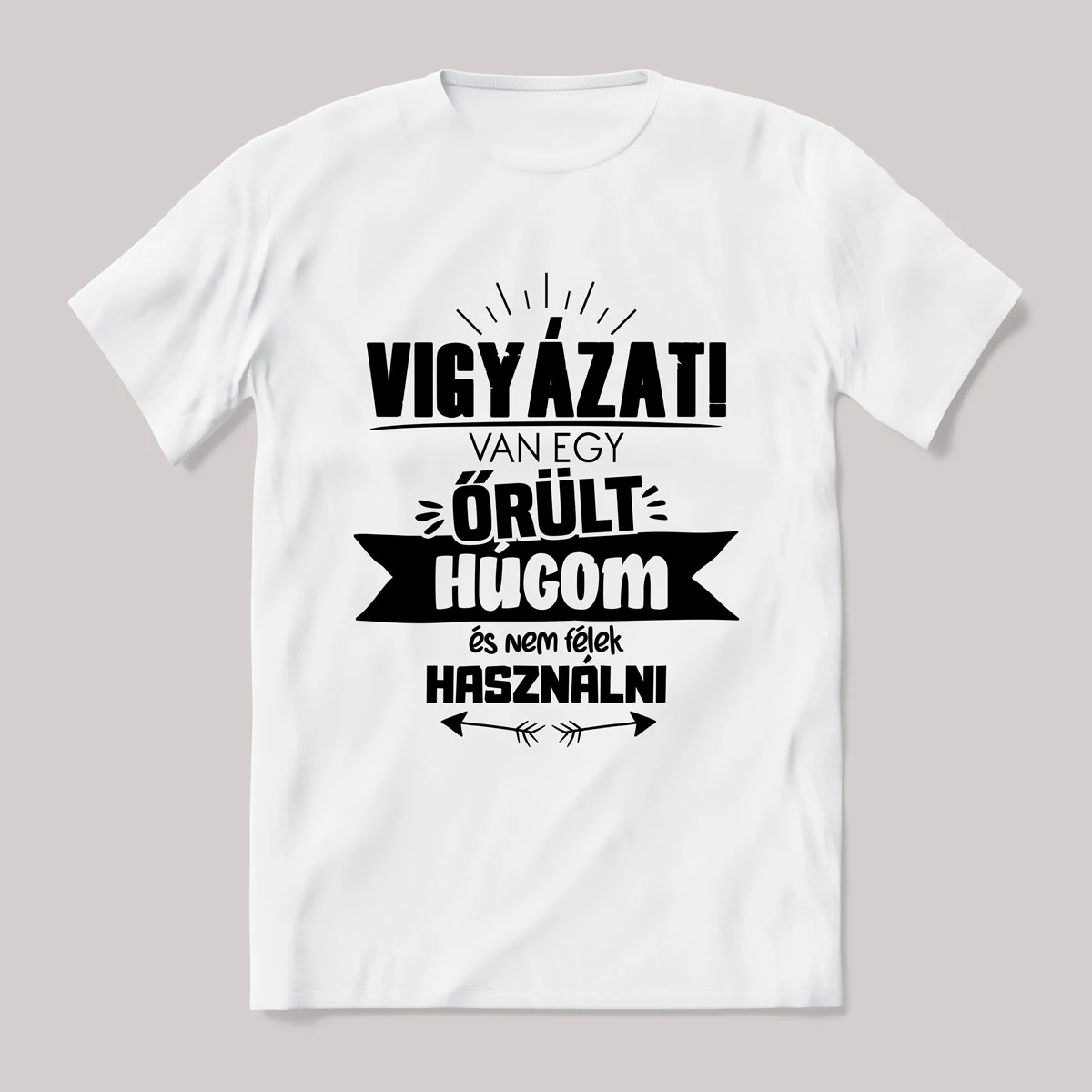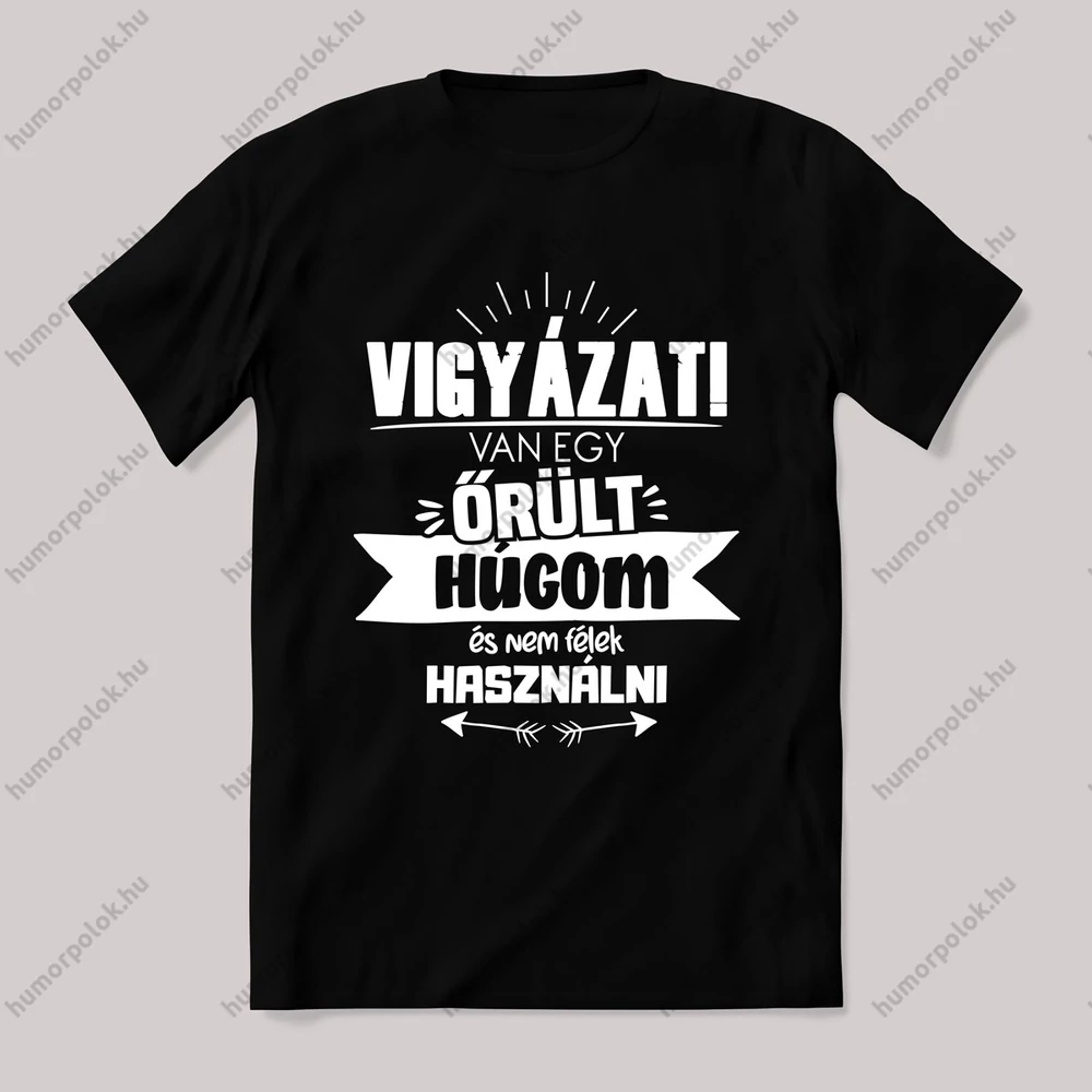 Vigyázat van egy őrült húgom. Vicces póló. – ha ezt viseled, mindenki tudni fogja, hogy nem csak stílusod, de humorod is van! Ez a Testvéreknek kategória egyik legmenőbb darabja.