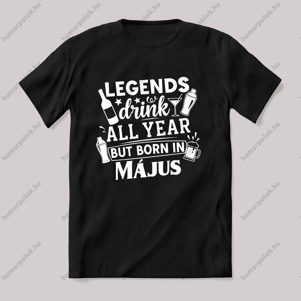 Legends drink all year, Május. Szülinapos póló. – ha ezt viseled, mindenki tudni fogja, hogy nem csak stílusod, de humorod is van! Ez a Május kategória egyik legmenőbb darabja.