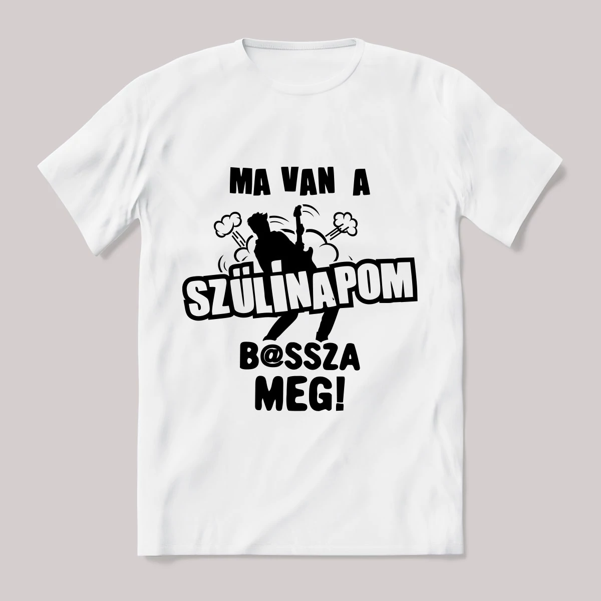 Ma van a szülinapom basszameg. Feliratos vicces póló.