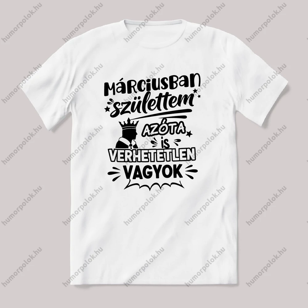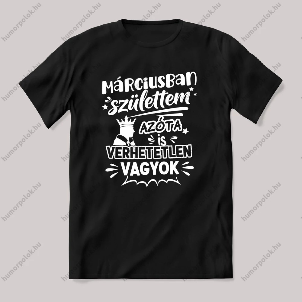 Márciusban születtem azóta verhetetlen vagyok. Szülinapos póló. – ha ezt viseled, mindenki tudni fogja, hogy nem csak stílusod, de humorod is van! Ez a Március kategória egyik legmenőbb darabja.