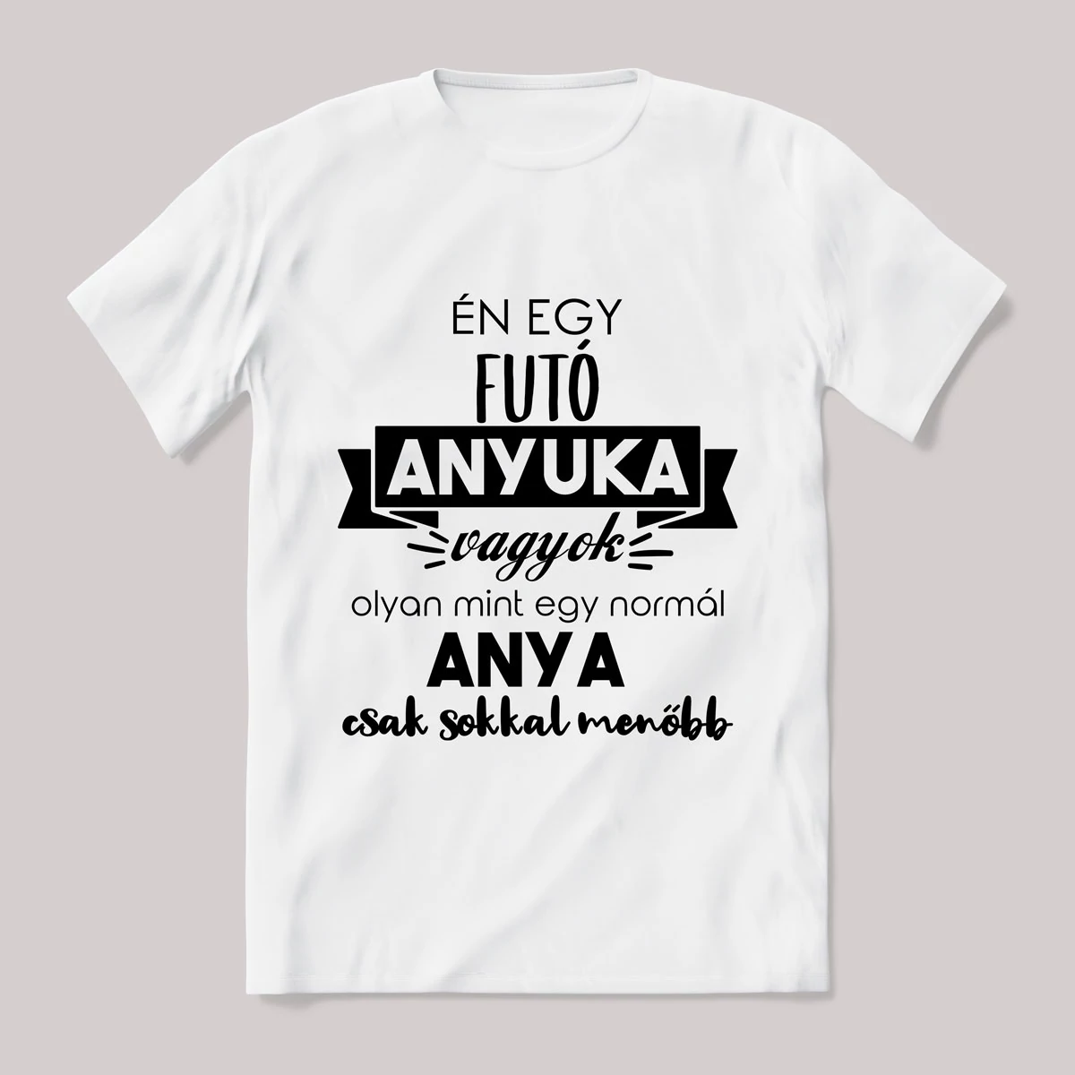 Én egy futó anyuka vagyok, olyan mint egy normál anya, csak sokkal menőbb. Feliratos vicces póló.