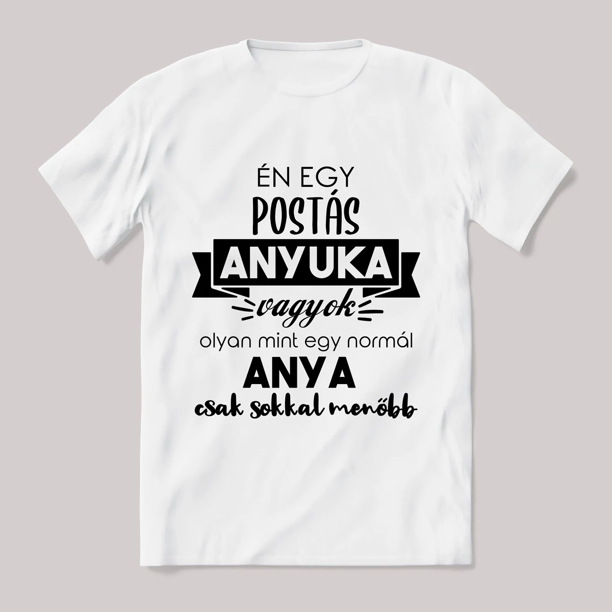 Én egy postás anyuka vagyok, olyan mint egy normál anya, csak sokkal menőbb. Feliratos vicces póló.