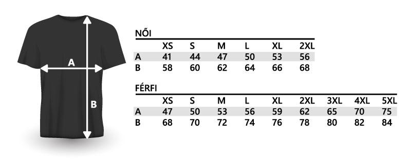 Szóval: mérd le egy használt jól álló pólód, nézd meg a táblázatot, és aztán nyomd a rendelés gombot.