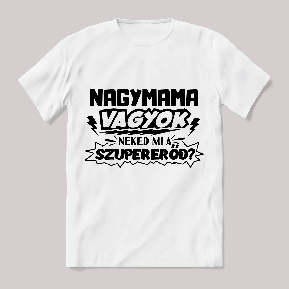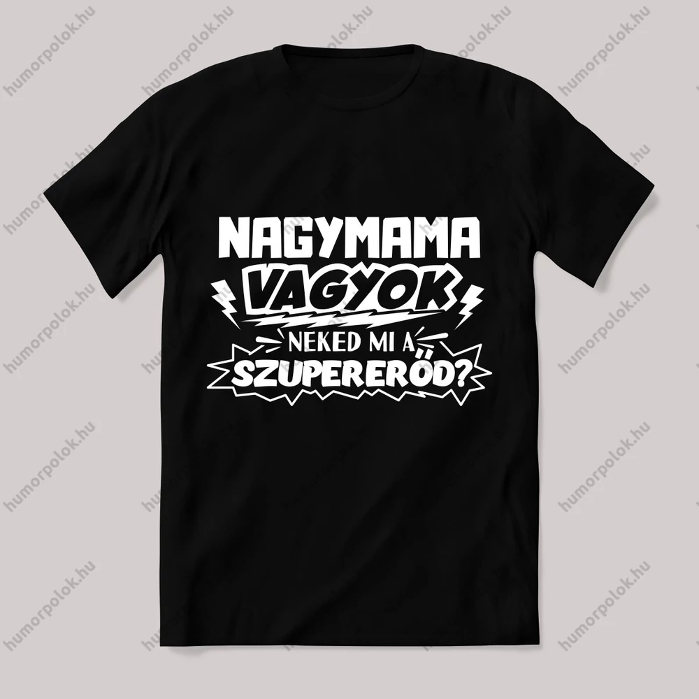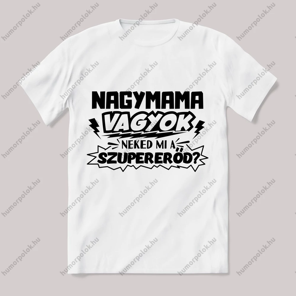 Nagymama vagyok, mi a szupererőd? Vicces póló. – ha ezt viseled, mindenki tudni fogja, hogy nem csak stílusod, de humorod is van! Ez a Nagymamáknak kategória egyik legmenőbb darabja.