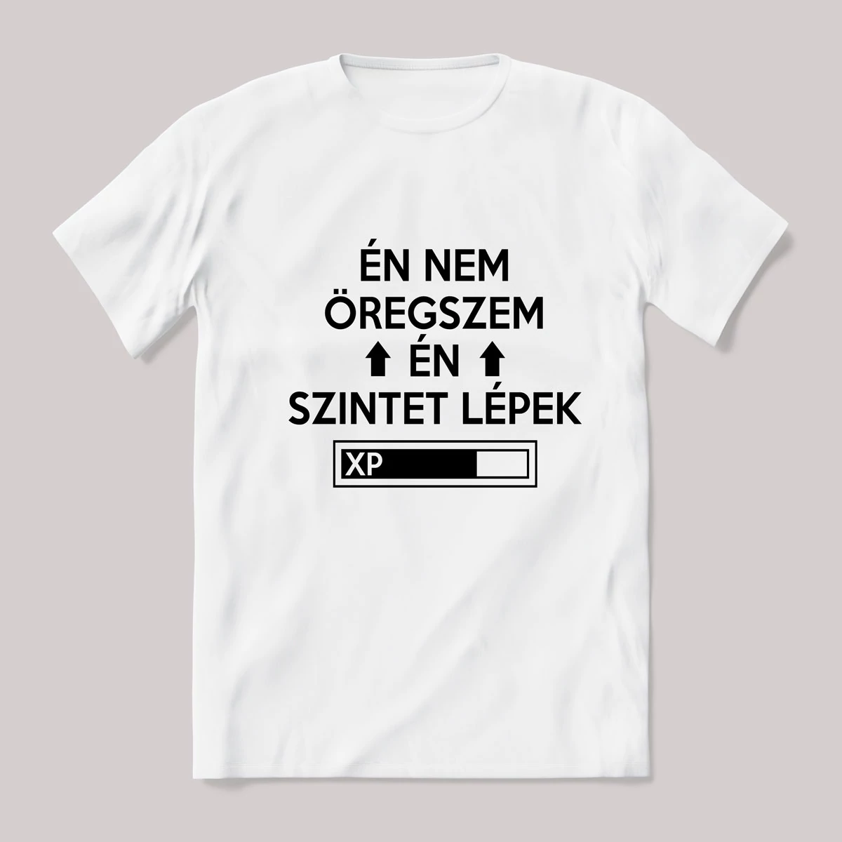 Nem öregszem, szintet lépek. Vicces feliratos póló.