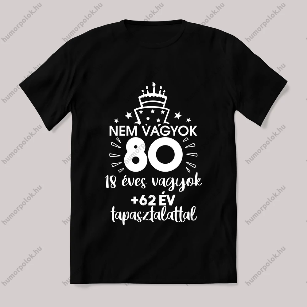 Nem vagyok 80 hanem 18+62 tapasztalat. Szülinapos póló. – ha ezt viseled, mindenki tudni fogja, hogy nem csak stílusod, de humorod is van! Ez a 80. Éves kategória egyik legmenőbb darabja.