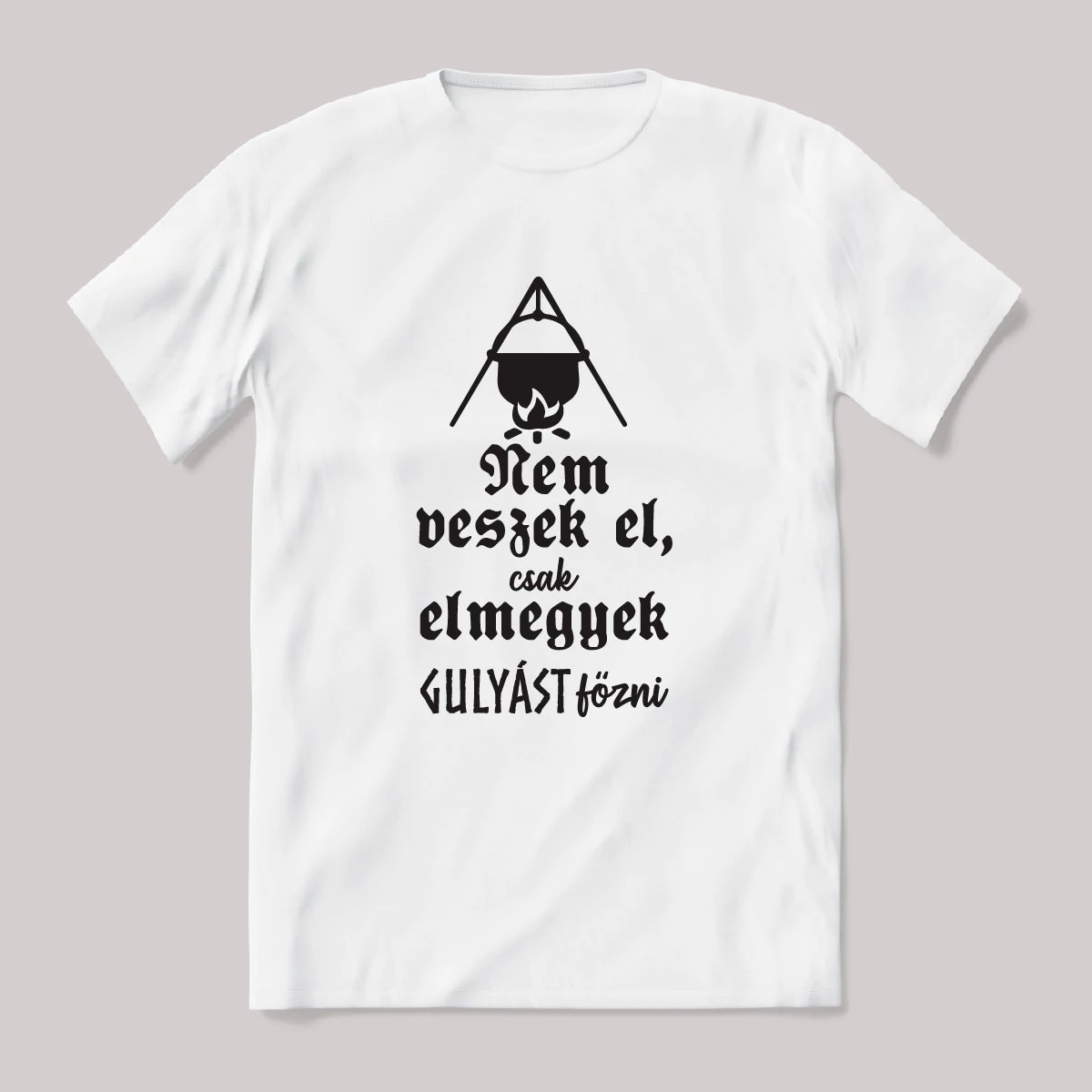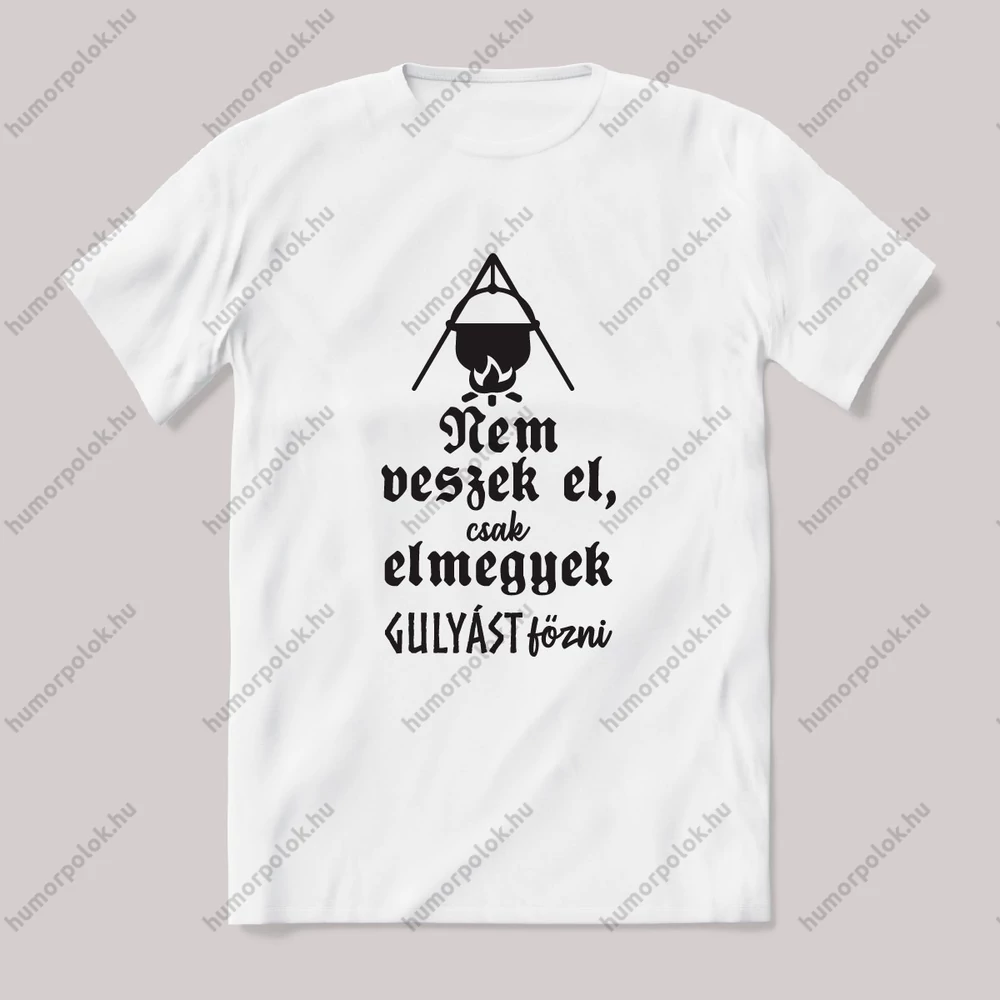 Nem veszek el, csak elmegyek gulyást főzni. Magyaros vicces póló.