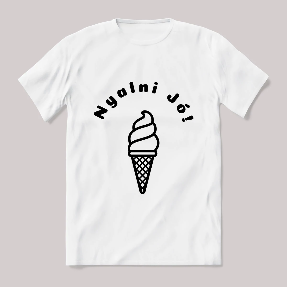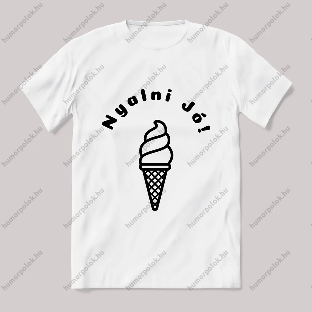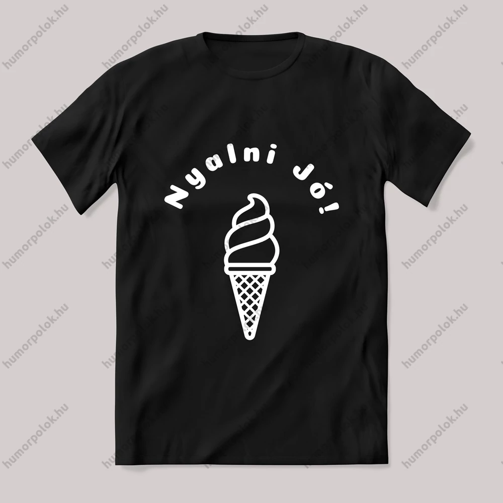 Nyalni jó! Feliratos póló – ha ezt viseled, mindenki tudni fogja, hogy nem csak stílusod, de humorod is van! Ez a Kajával kapcsolatos kategória egyik legmenőbb darabja.