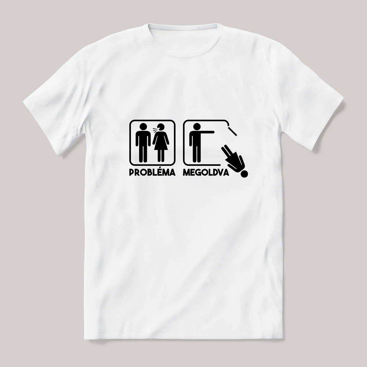 Probléma megoldva nincs nő feliratos póló – ha ezt viseled, mindenki tudni fogja, hogy nem csak stílusod, de humorod is van! Ez a Férj és Feleség kategória egyik legmenőbb darabja.