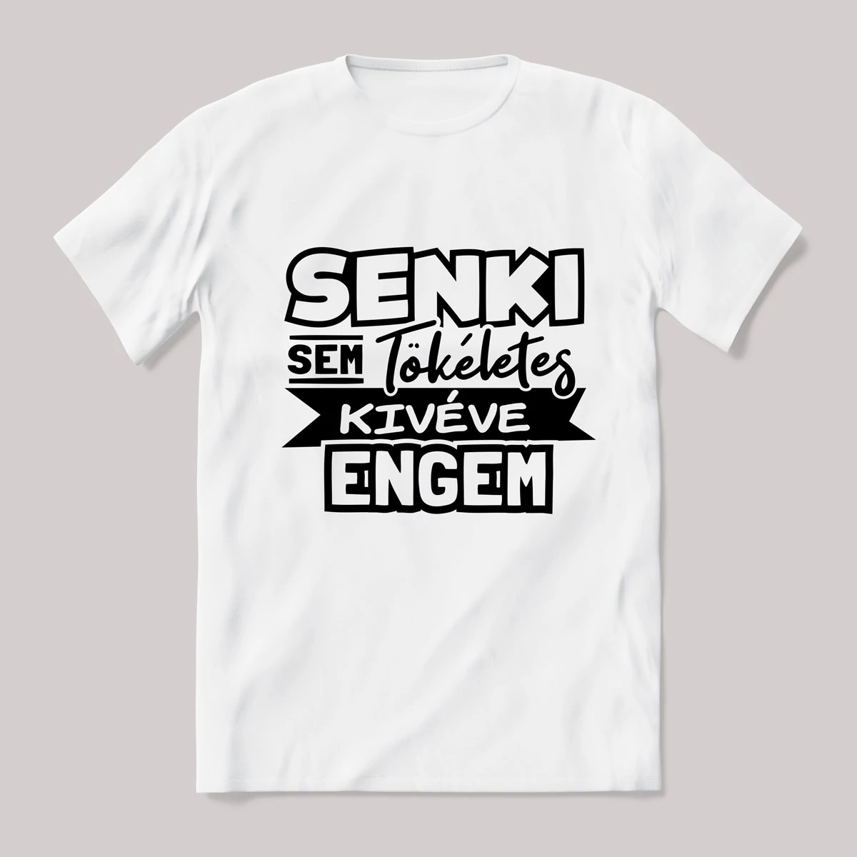 Senki sem tökéletes, kivéve engem! Feliratos póló – ha ezt viseled, mindenki tudni fogja, hogy nem csak stílusod, de humorod is van! Ez a Egoista pólók kategória egyik legmenőbb darabja.