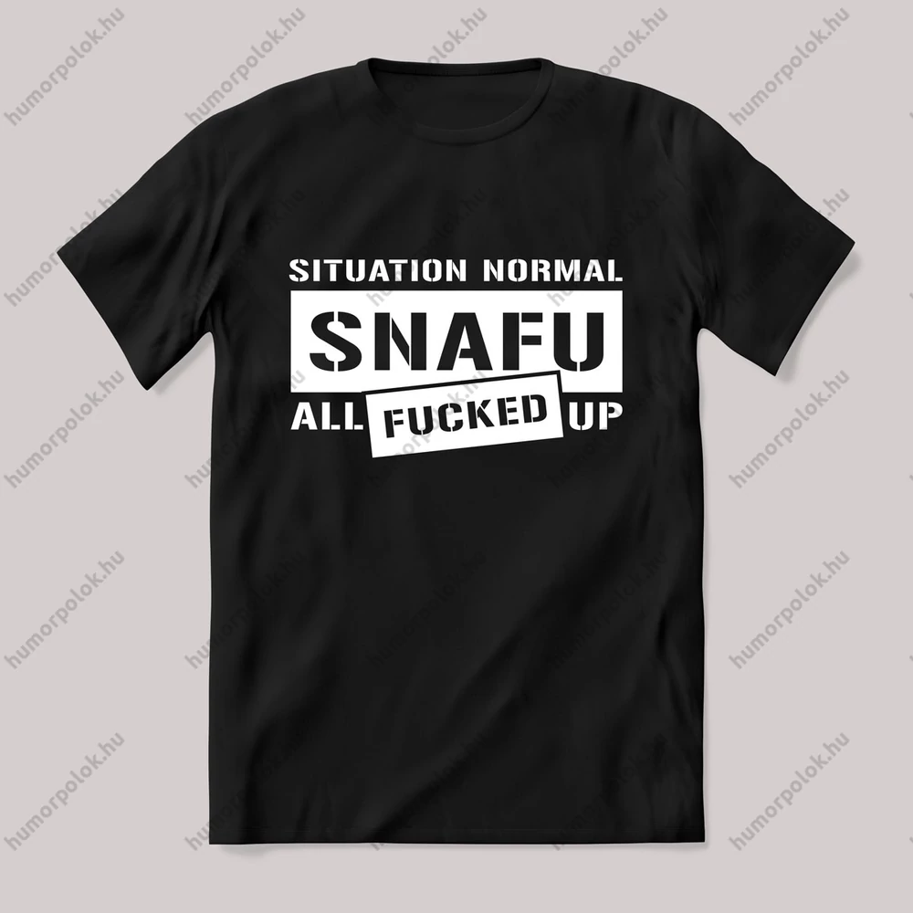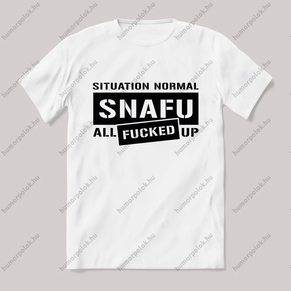Snafu dizájn póló – ha ezt viseled, mindenki tudni fogja, hogy nem csak stílusod, de humorod is van! Ez a Angolul írt beszólások kategória egyik legmenőbb darabja.