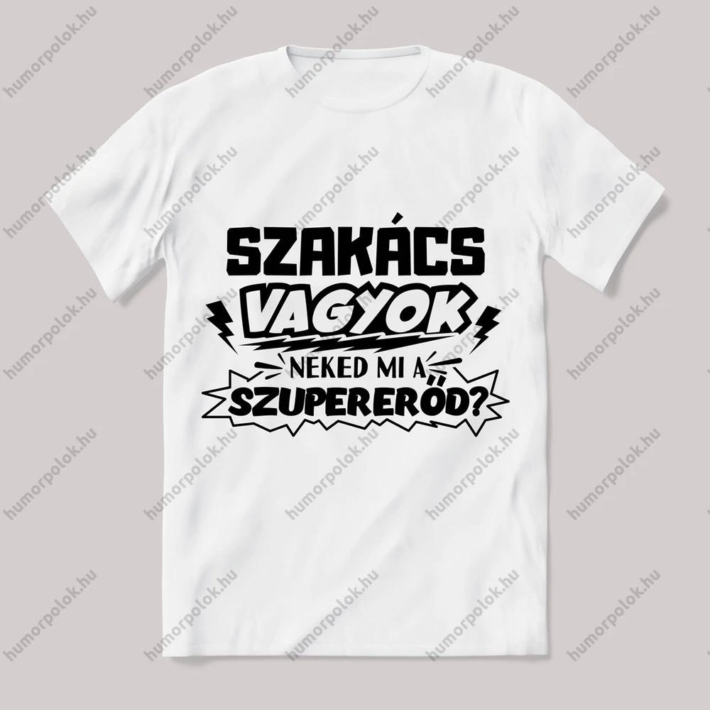 Szakács vagyok, mi a szupererőd? Vicces póló. – ha ezt viseled, mindenki tudni fogja, hogy nem csak stílusod, de humorod is van! Ez a Szakács kategória egyik legmenőbb darabja.