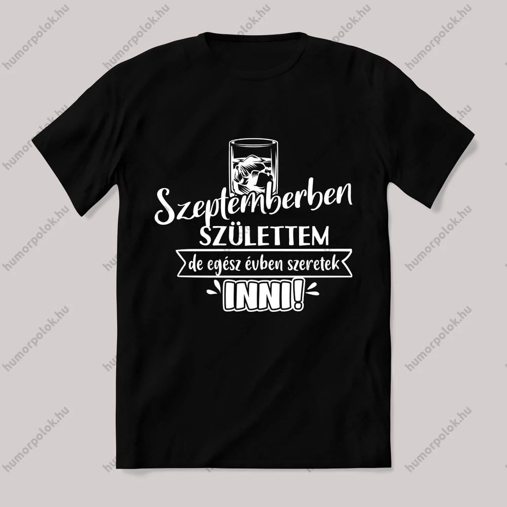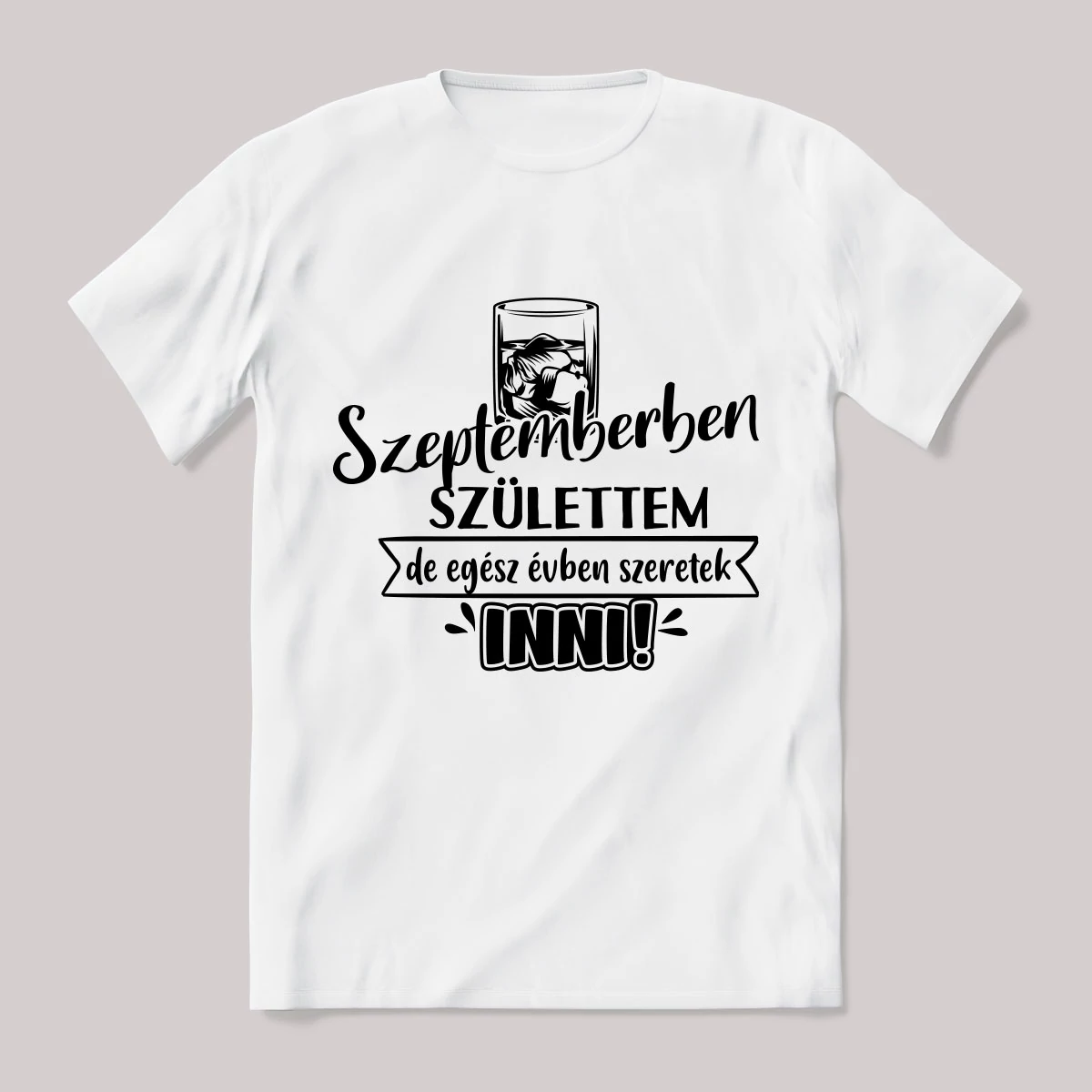 Szeptemberben születtem, de egész évben szeretek inni. Születésnapos feliratos vicces póló.