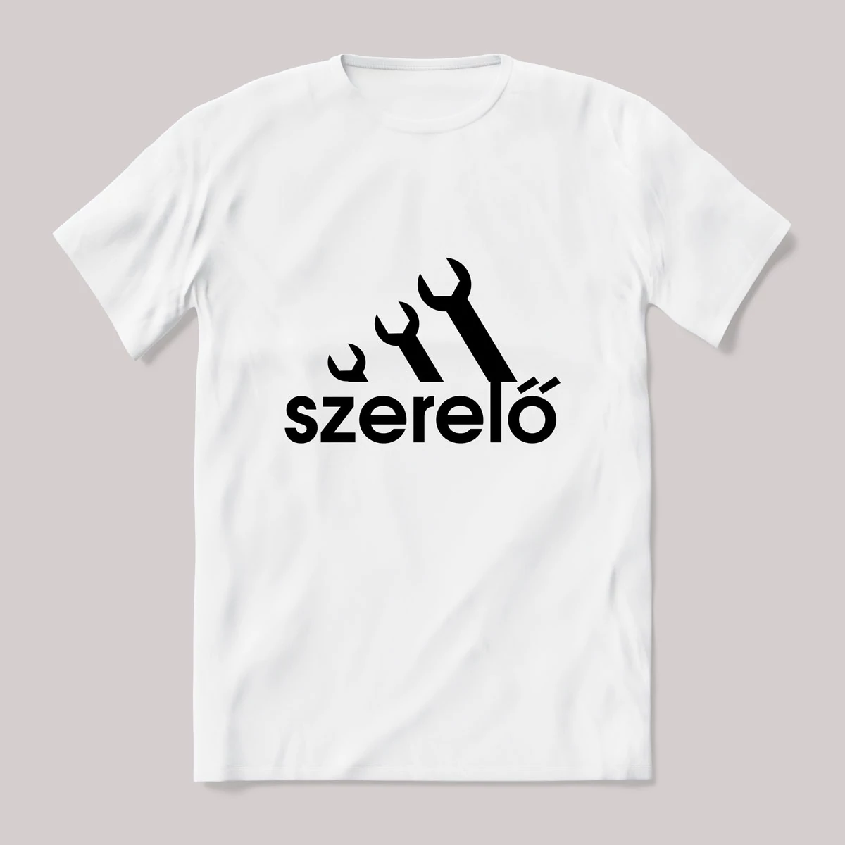 Szerelő, adidas paródia póló.